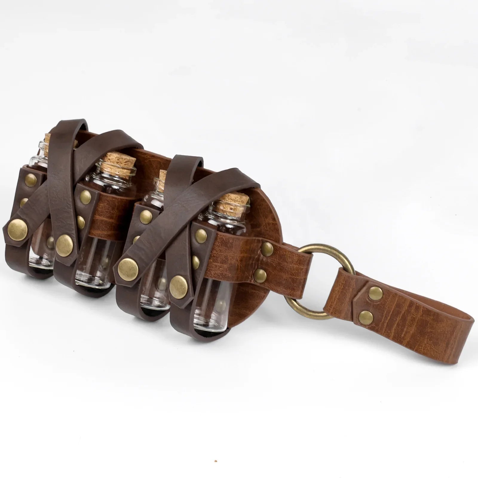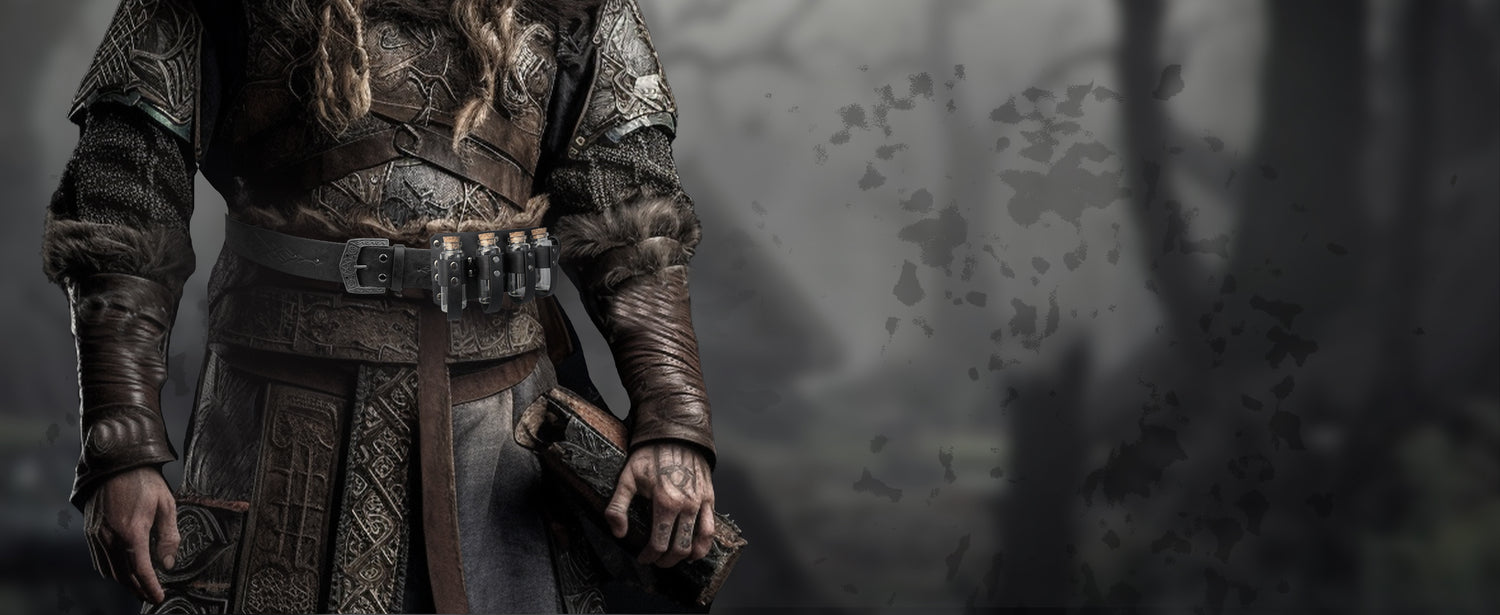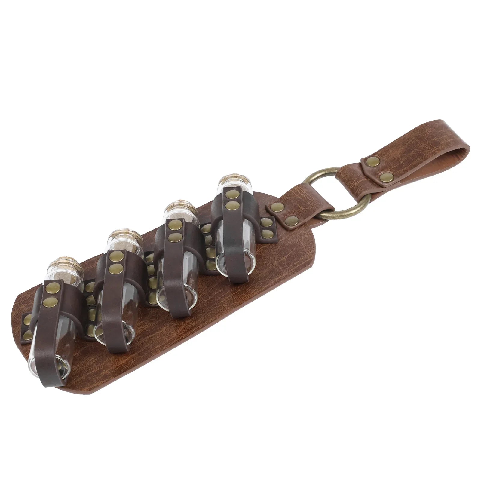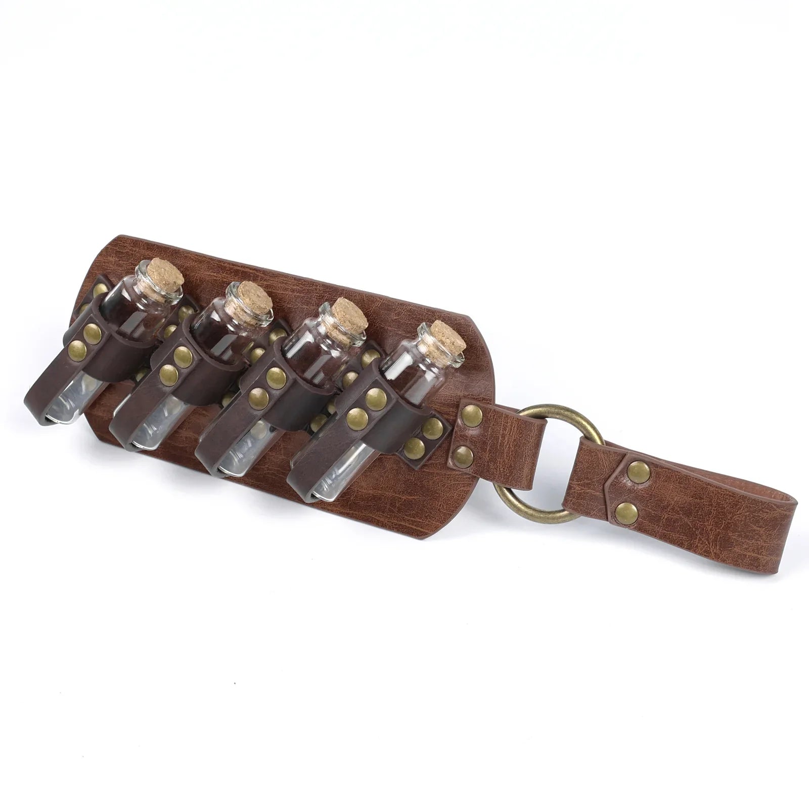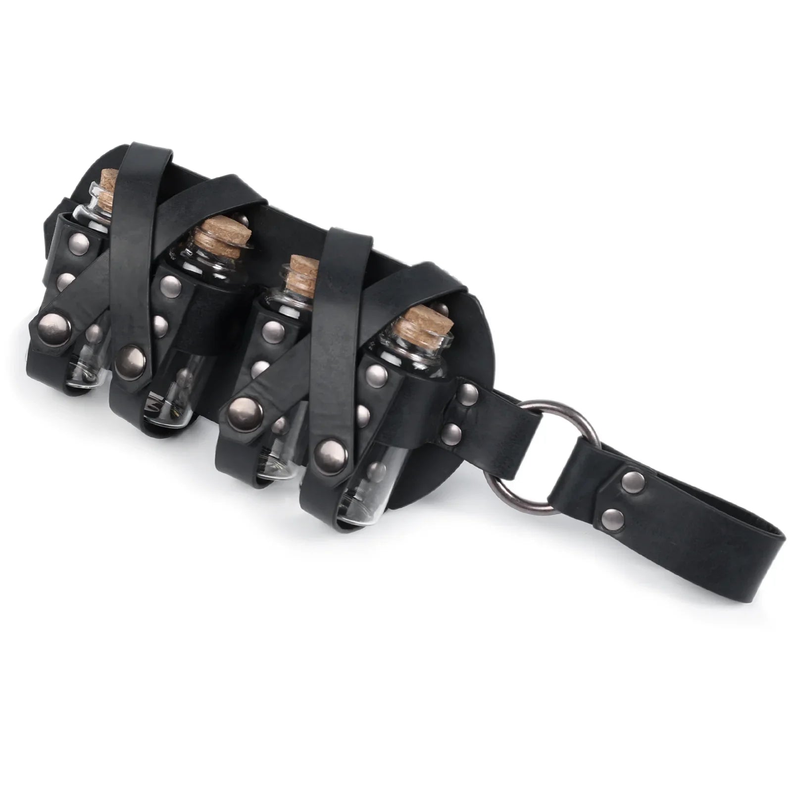 - COOL DESIGN- Featuring fantasy embossing for a distinctive and magical look, this belt comes equipped with four glass potion bottles, ideal for storing small amounts of liquids or small accessories. Each bottle is securely fastened yet easily accessible. The belt is sure to stand out on any adventure.