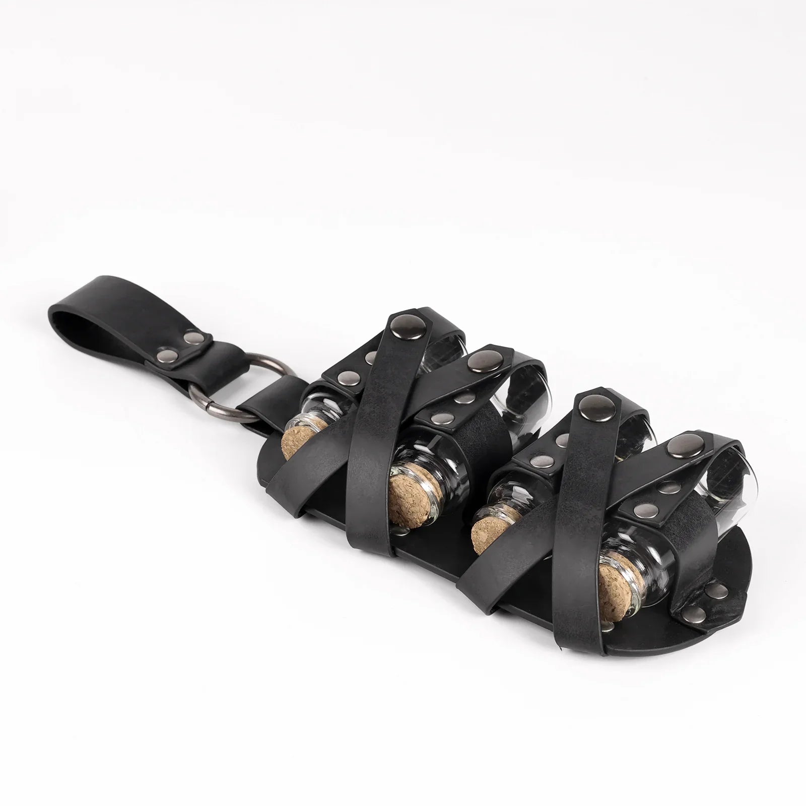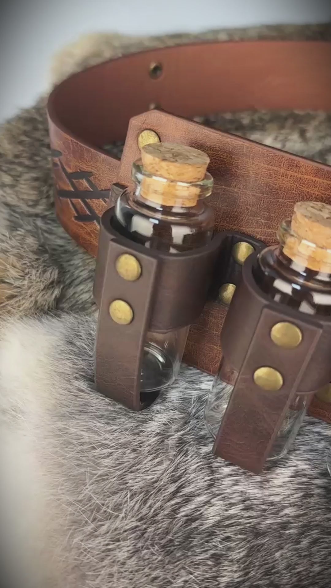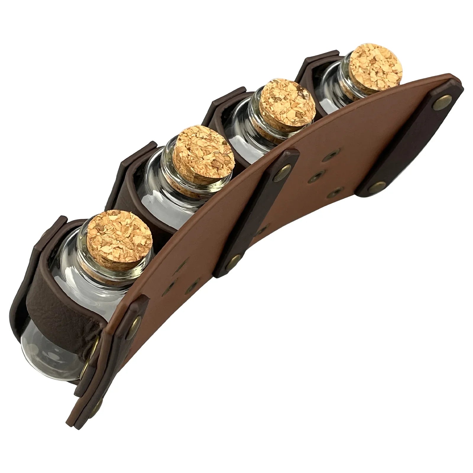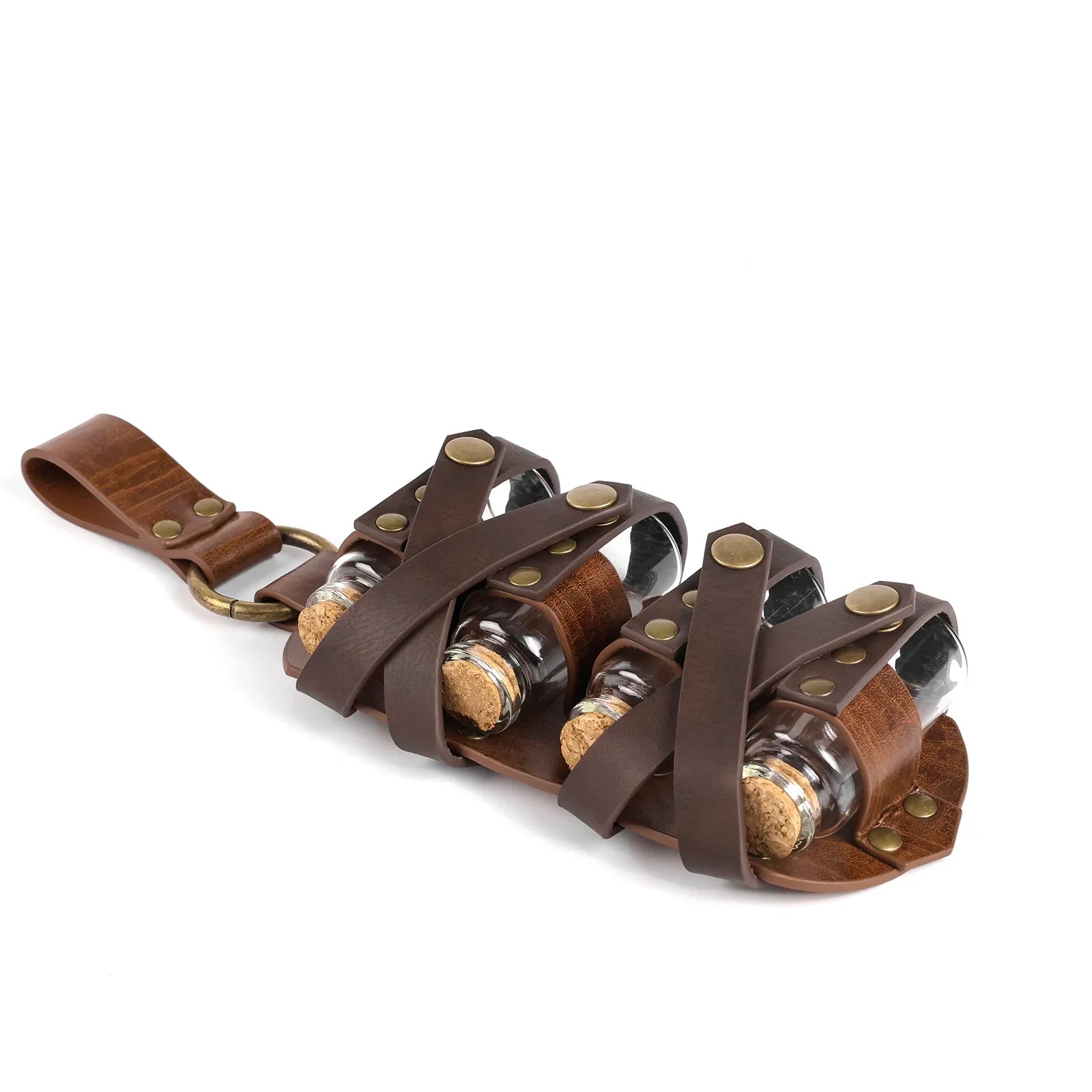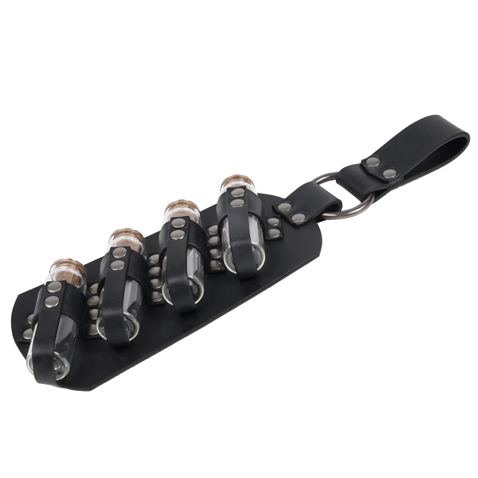 - COOL DESIGN- Featuring fantasy embossing for a distinctive and magical look, this belt comes equipped with four glass potion bottles, ideal for storing small amounts of liquids or small accessories. Each bottle is securely fastened yet easily accessible. The belt is sure to stand out on any adventure.
