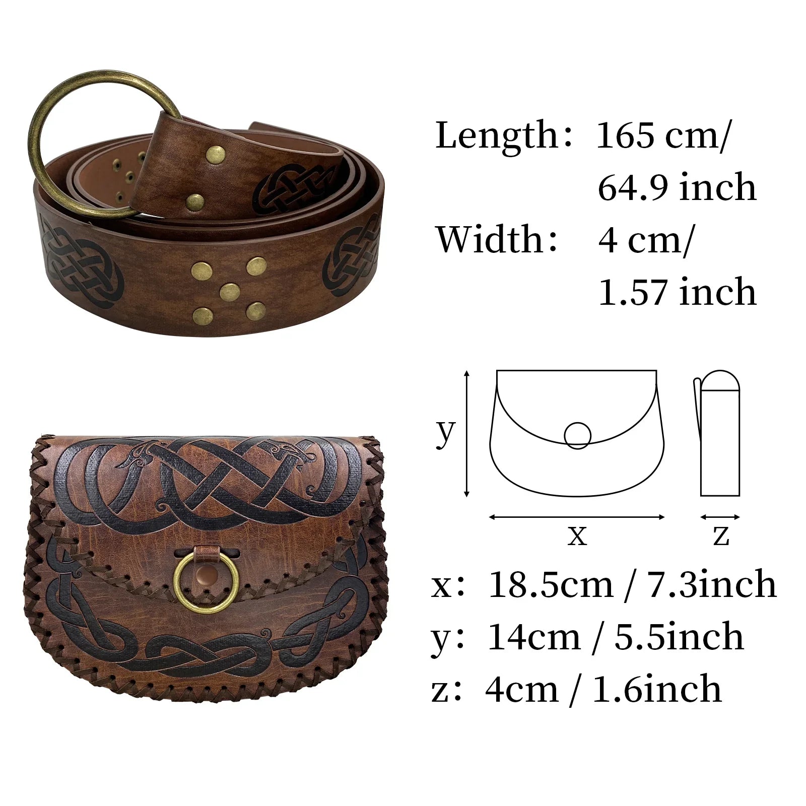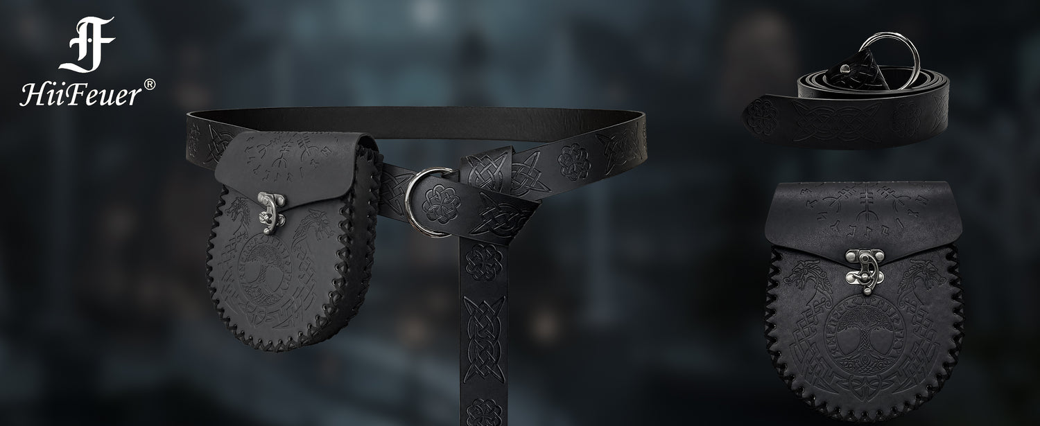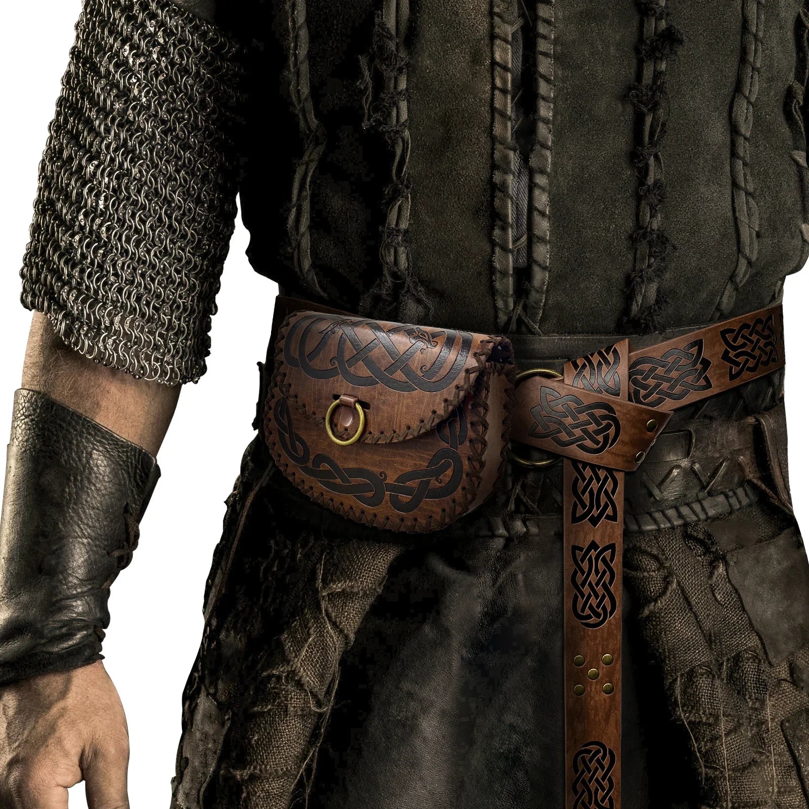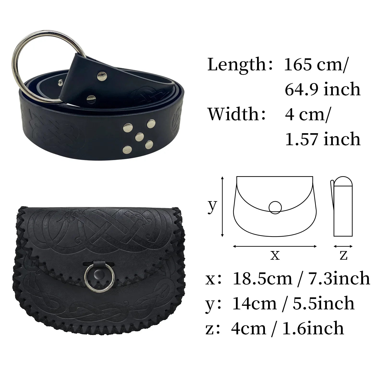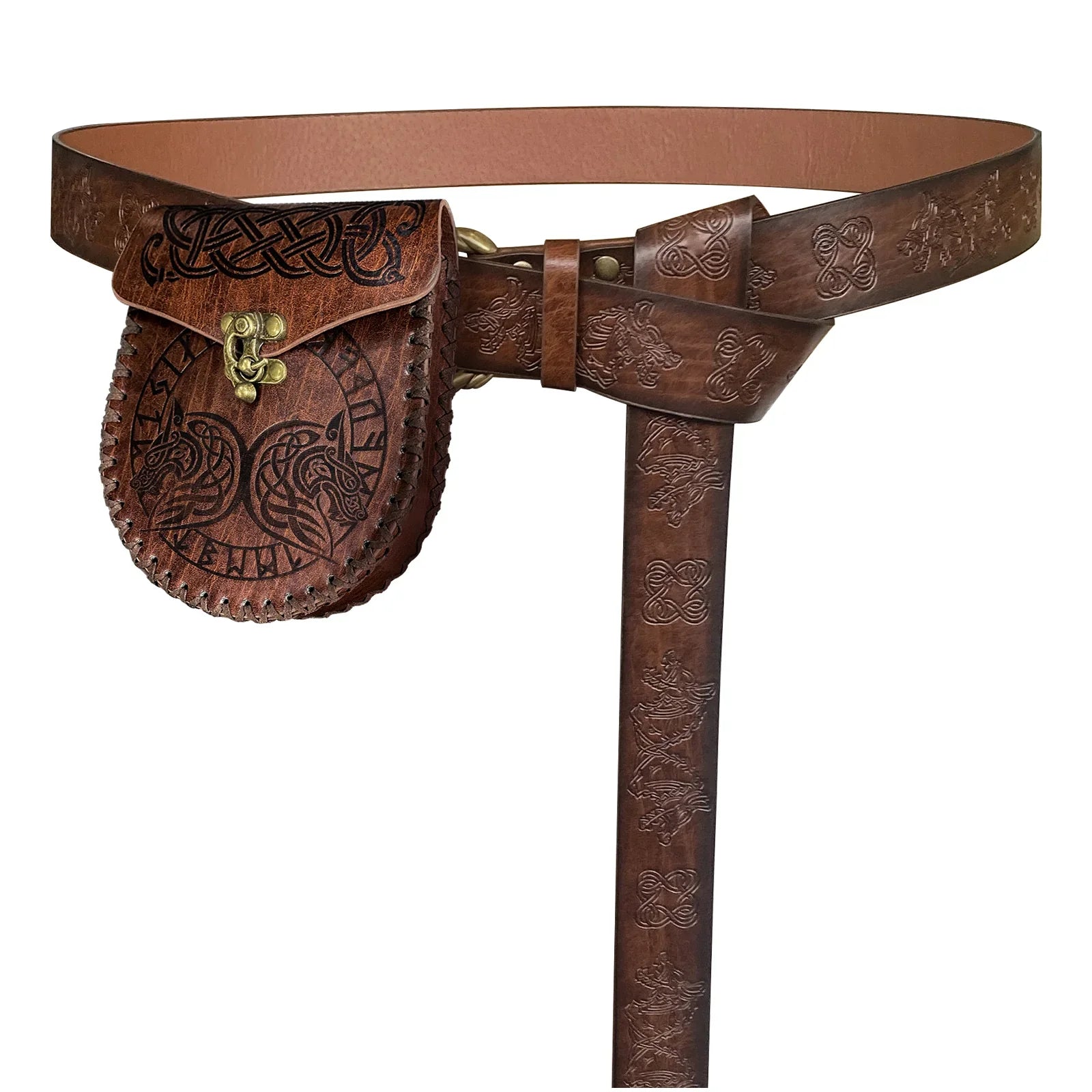 Medieval Belt with Nordic Embossed Portable Belt Bag, not only cool in Cosplay parties but also can wear in daily use.