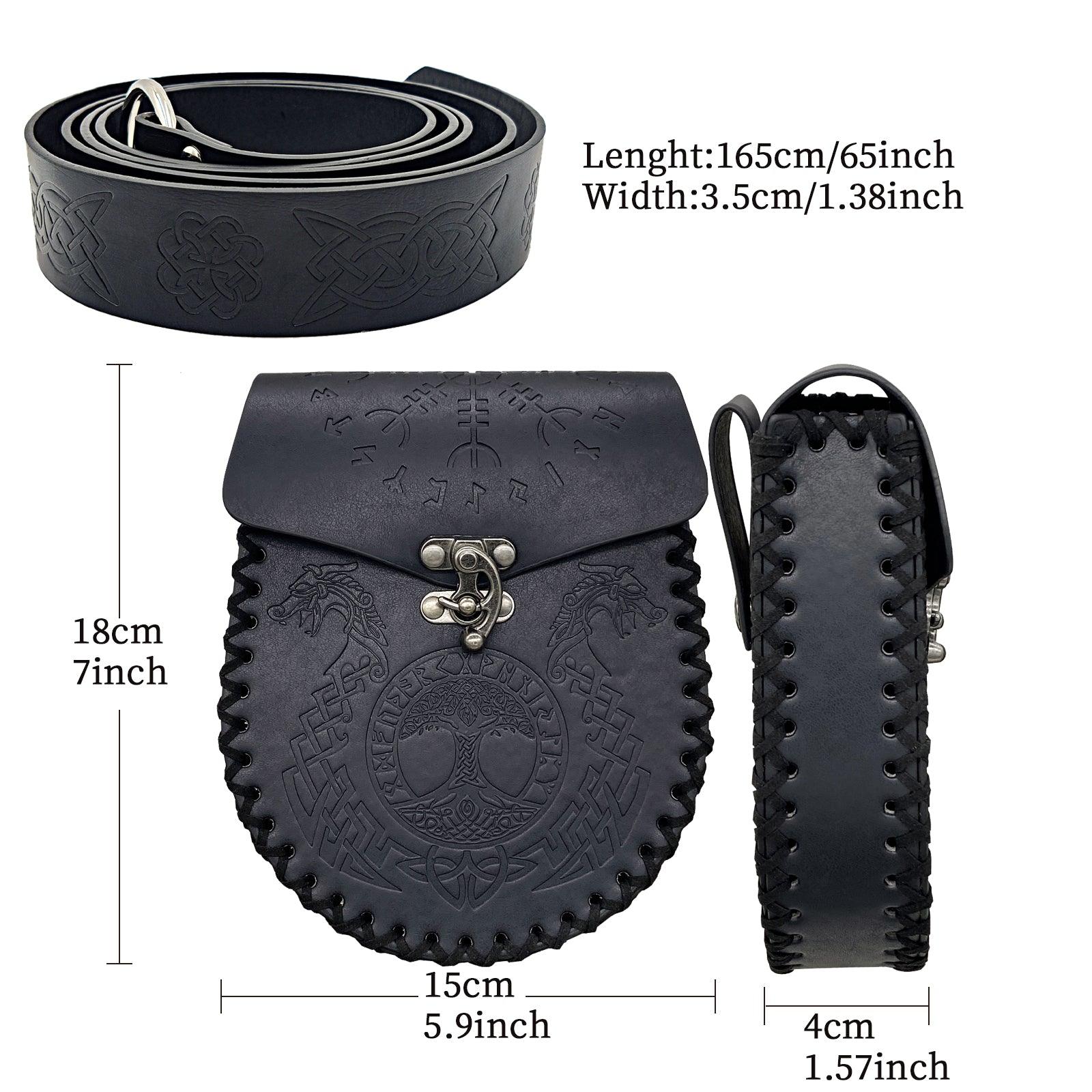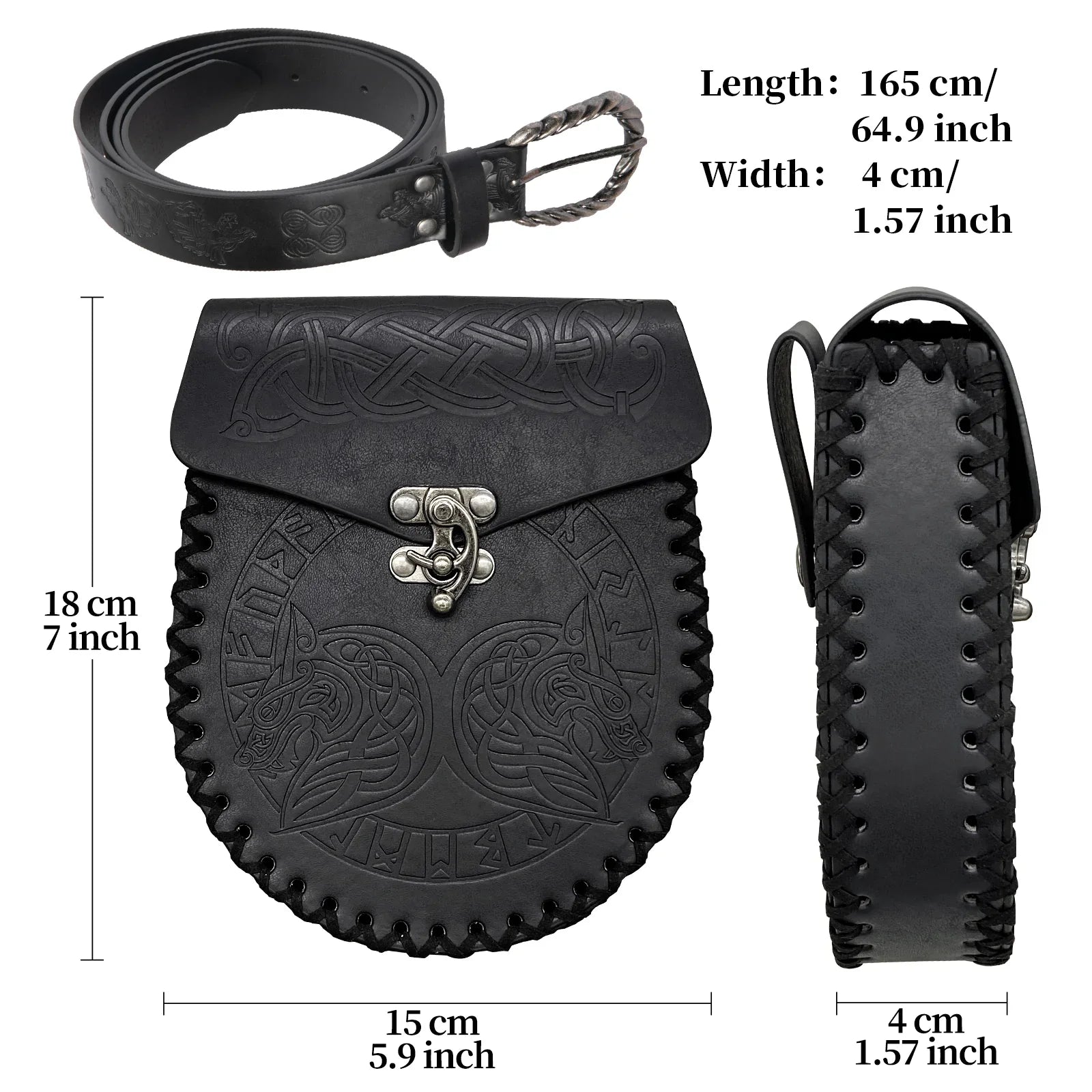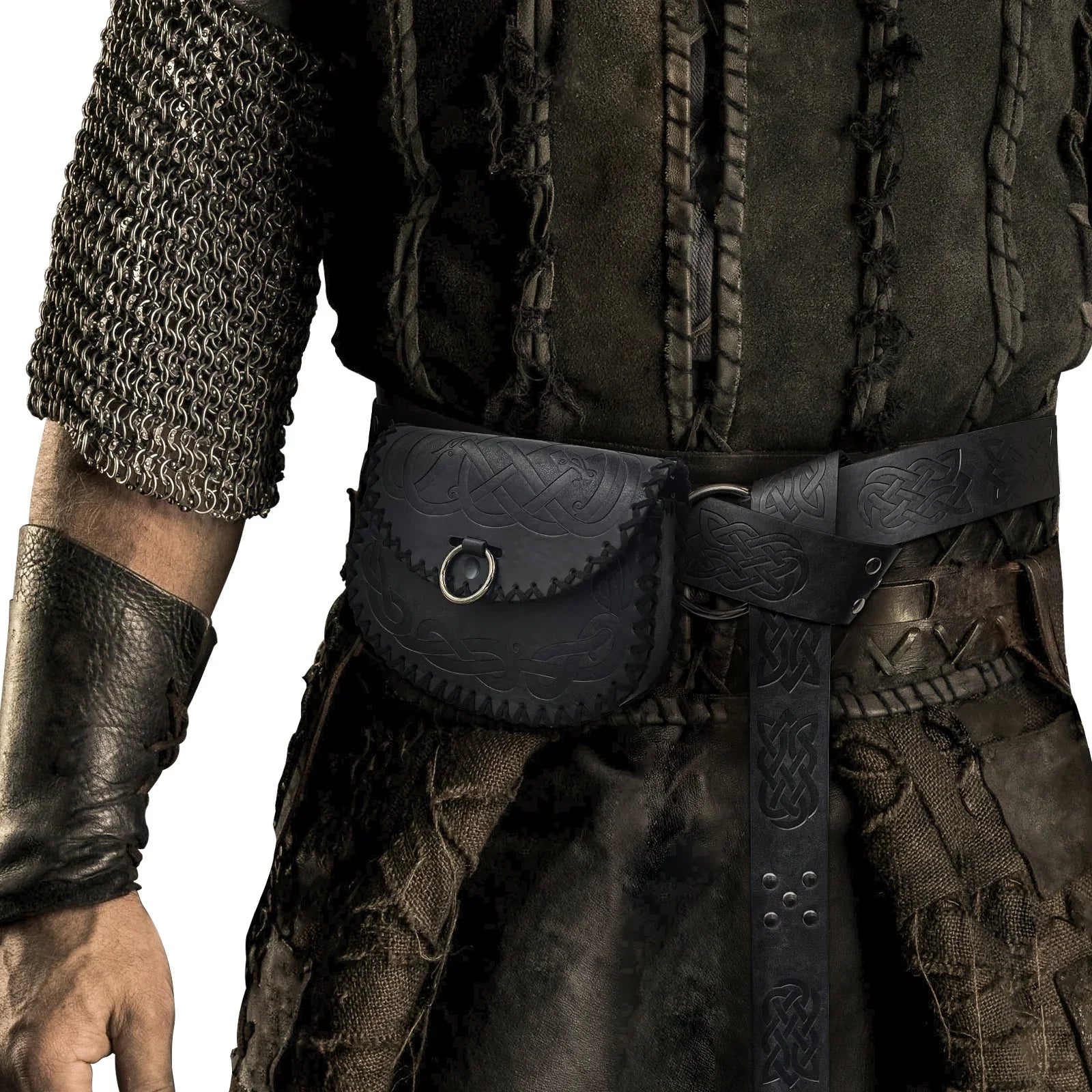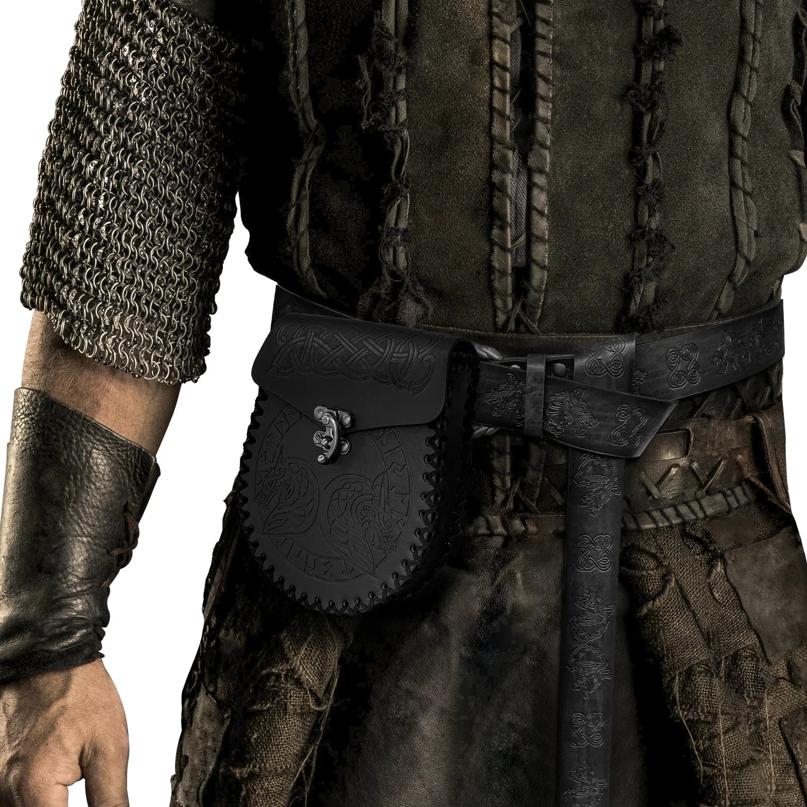 Medieval Belt with Nordic Embossed Portable Belt Bag, not only cool in Cosplay parties but also can wear in daily use.