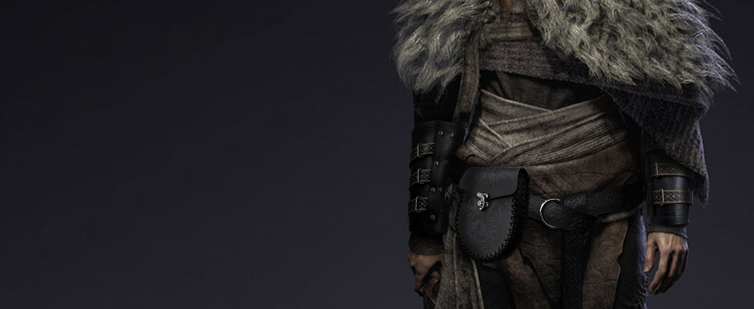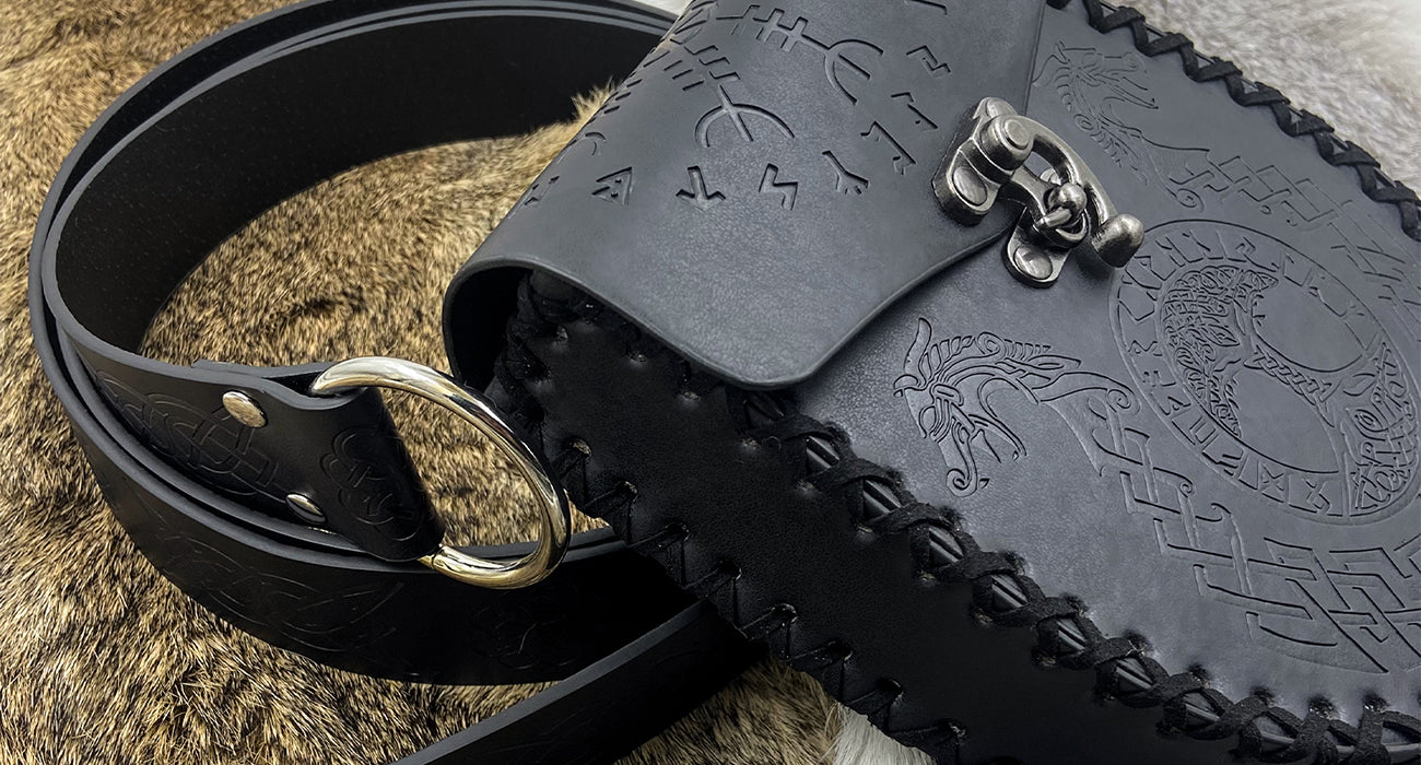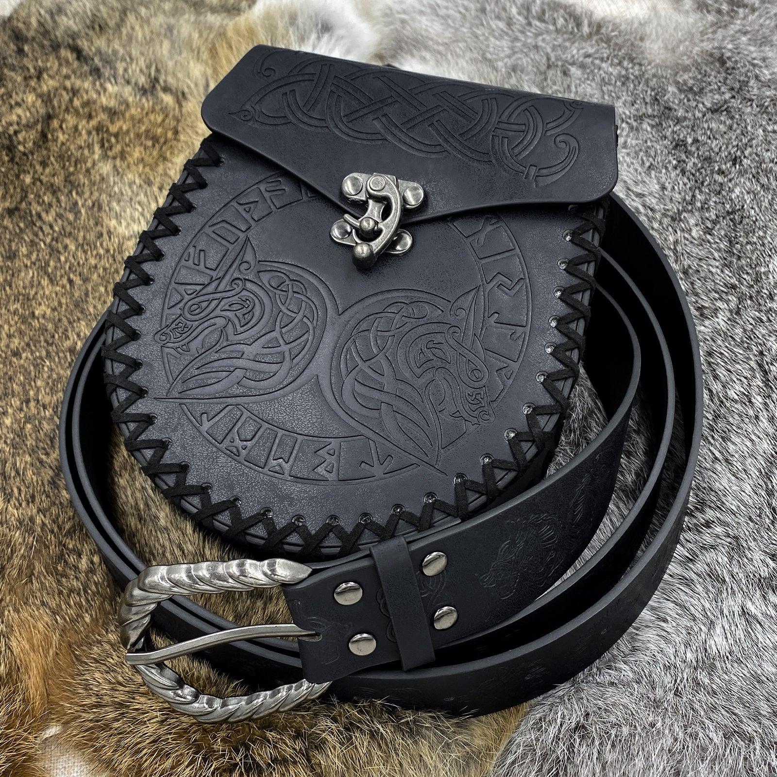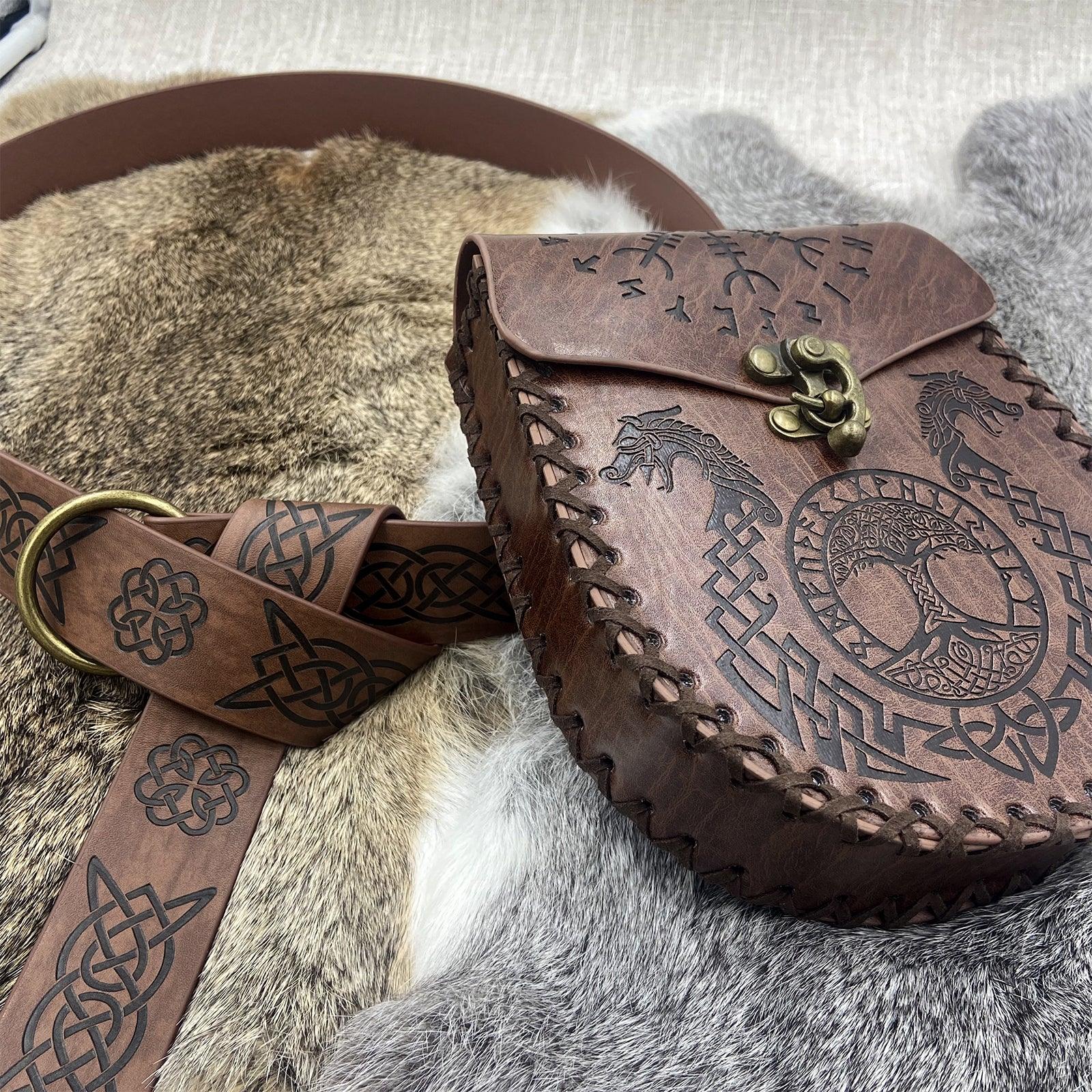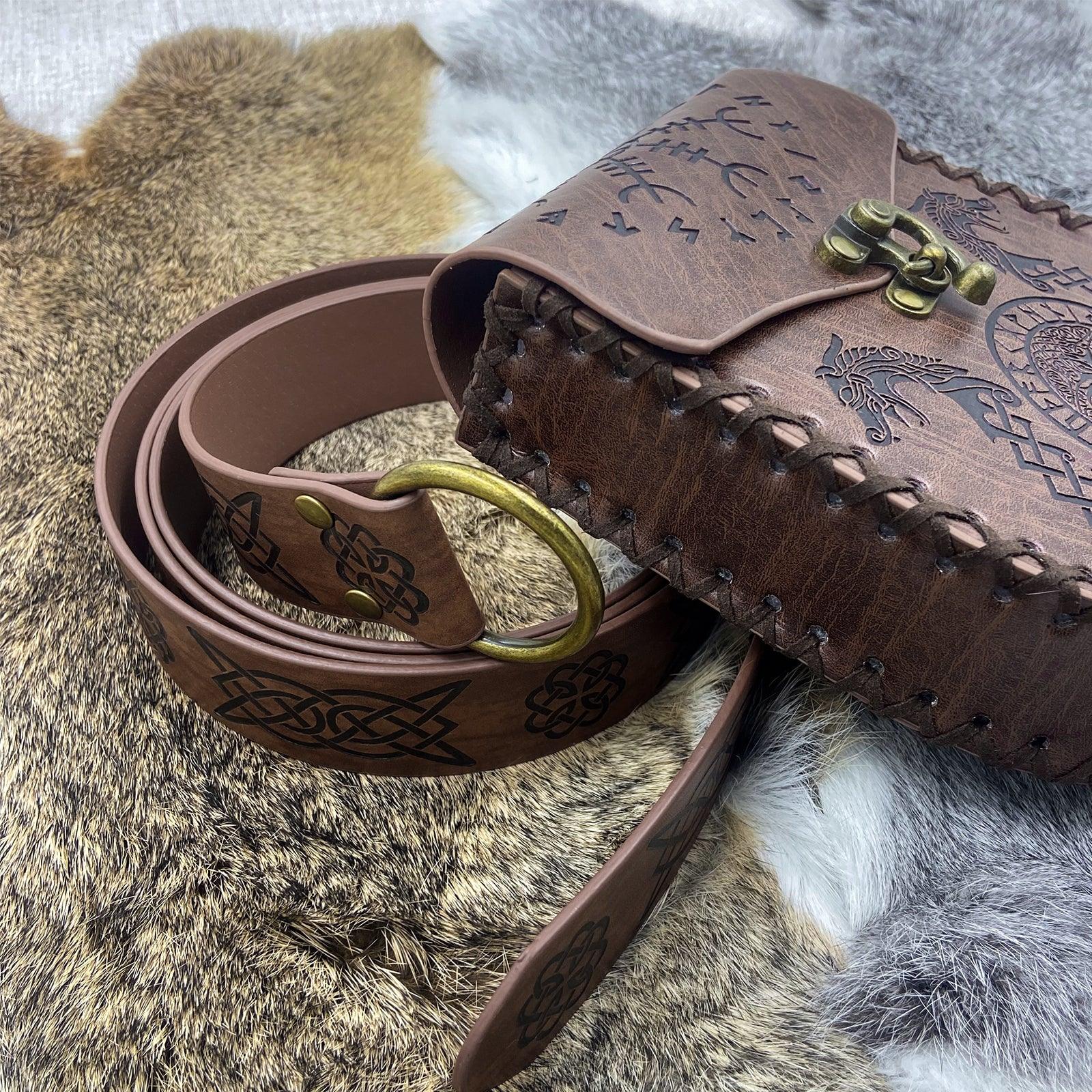 Medieval Belt with Nordic Embossed Portable Belt Bag, not only cool in Cosplay parties but also can wear in daily use.