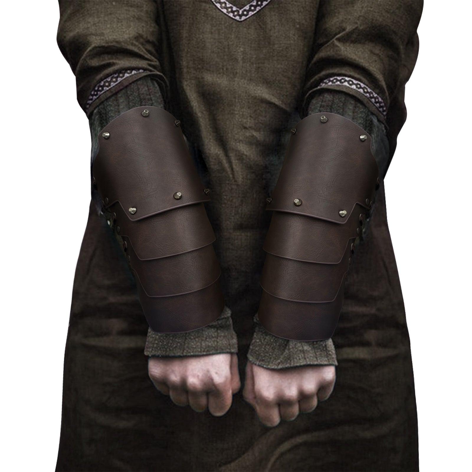 - COOL DESIGN- Retro medieval Faux Leather Bracers, for the LARP cosplay lovers. Reap the admiration and envy of others with our Guards!