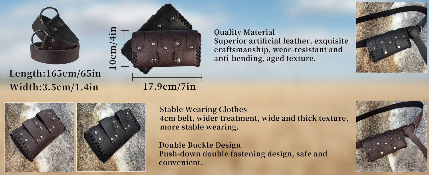 - COOL DESIGN- The distinctive rectangular belt pouch with portable closure not only keeps your phone safe, but also becomes your most stylized accessory when you transform into a medieval warrior.