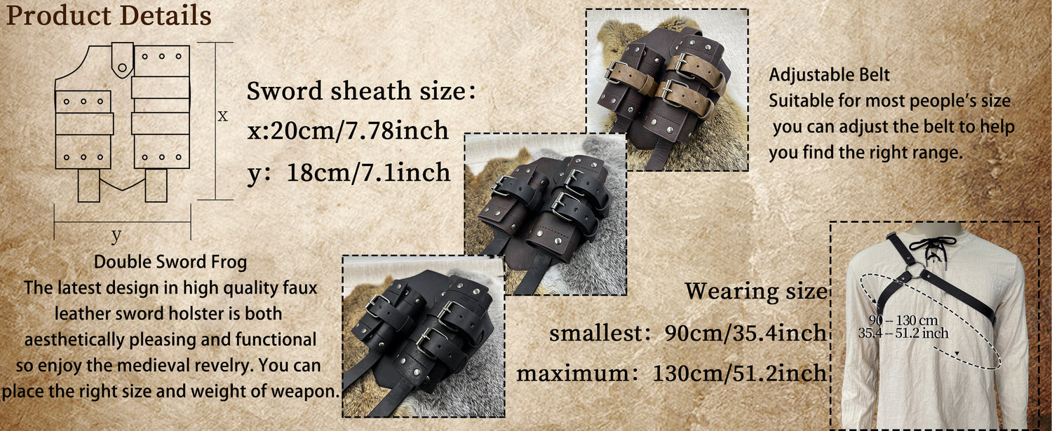 - ADJUSTABLE-One size for all. Retro fastening buckles. For most sizes of swords and daggers. Comfortable and suitable any time any where.