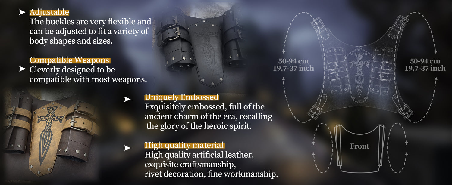 - COOL DESIGN- Embossed Sword Holster Design, for the LARP cosplay lovers. Classic shape with fastening buckles, bring you back to the middle ages. Are you ready to get dressed and show yourself?