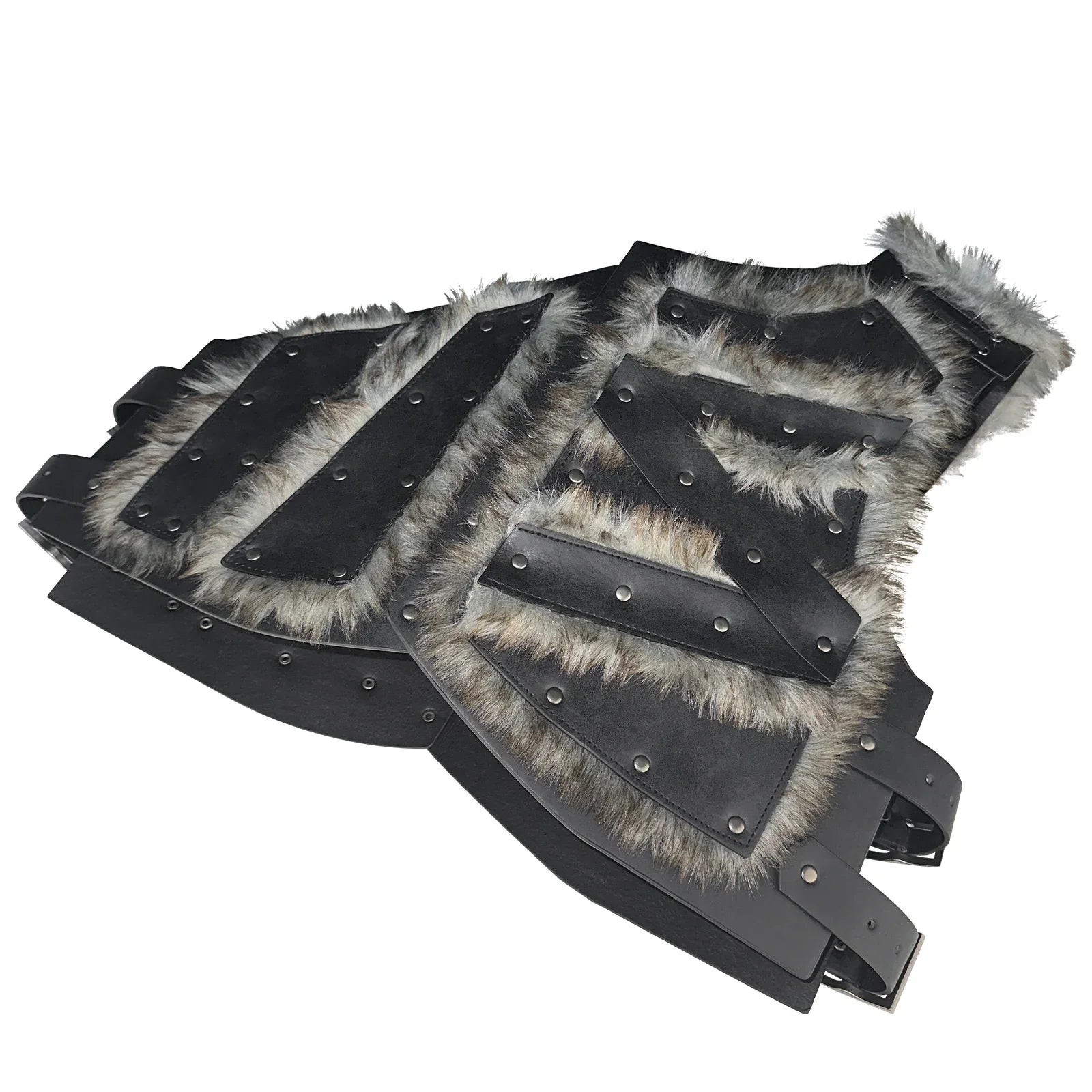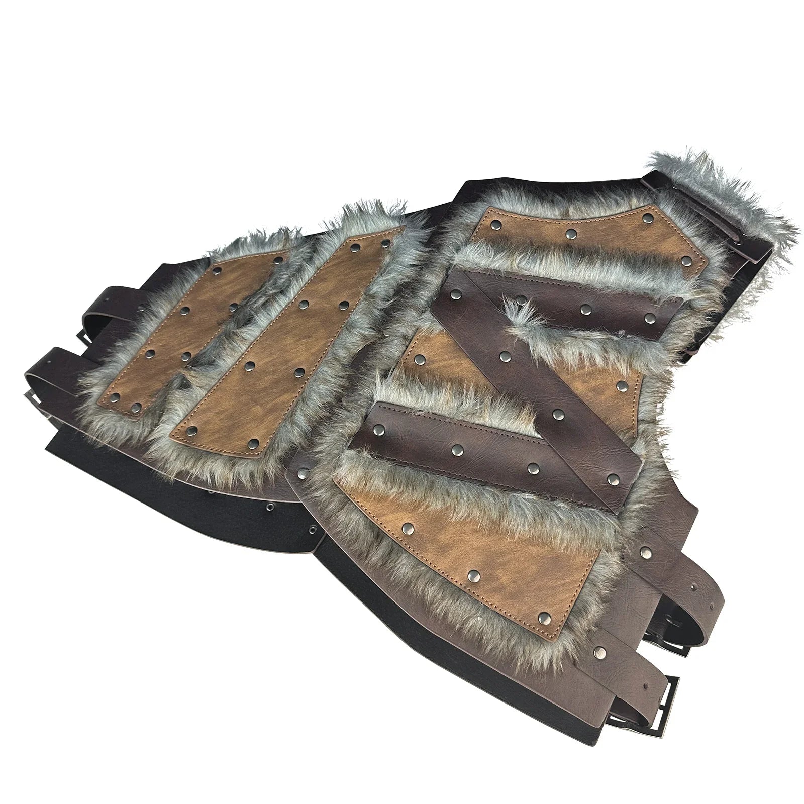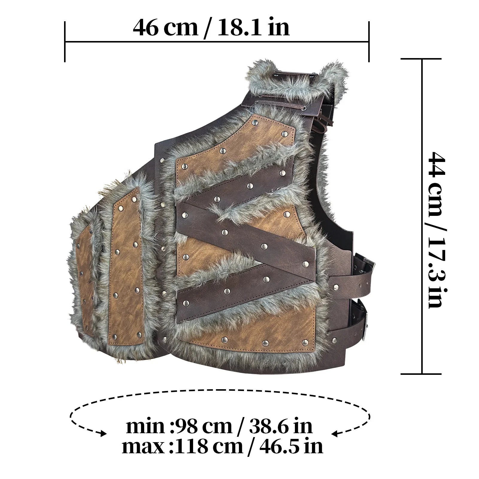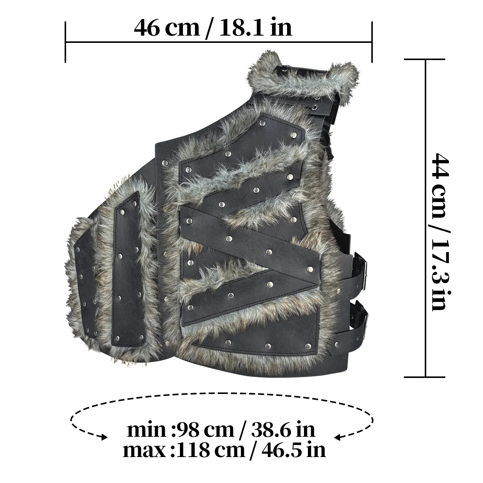 HiiFeuer Viking Artificial Fur Faux Leather Chest Armor, Medieval Vintage Barbarian Body Armor Knight Adjustable Vest Armor