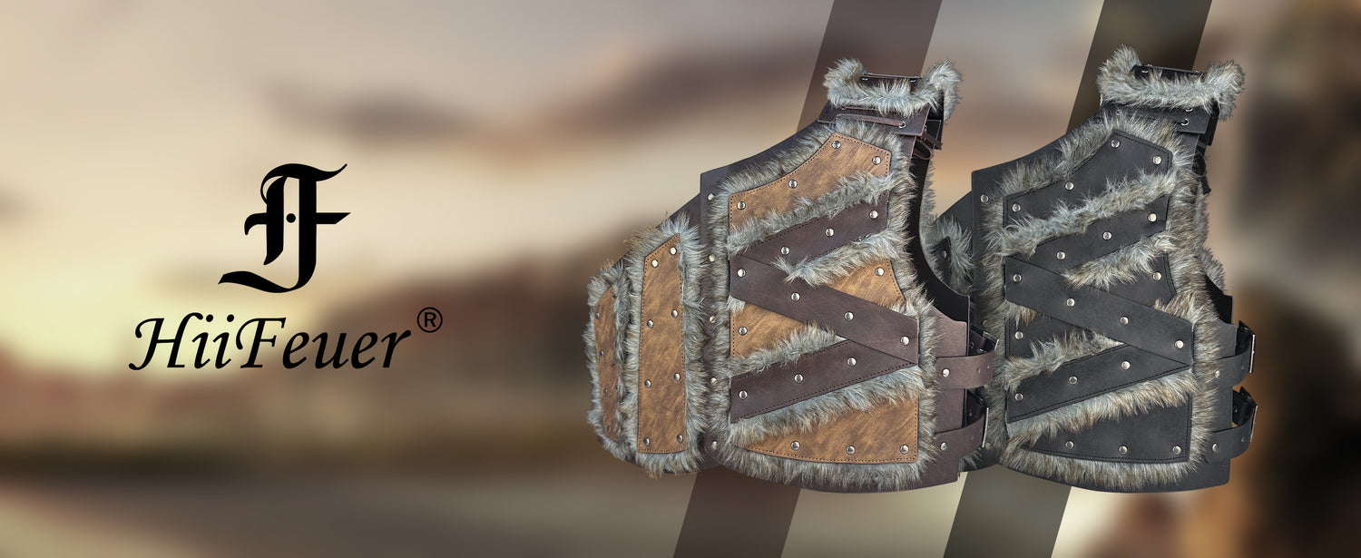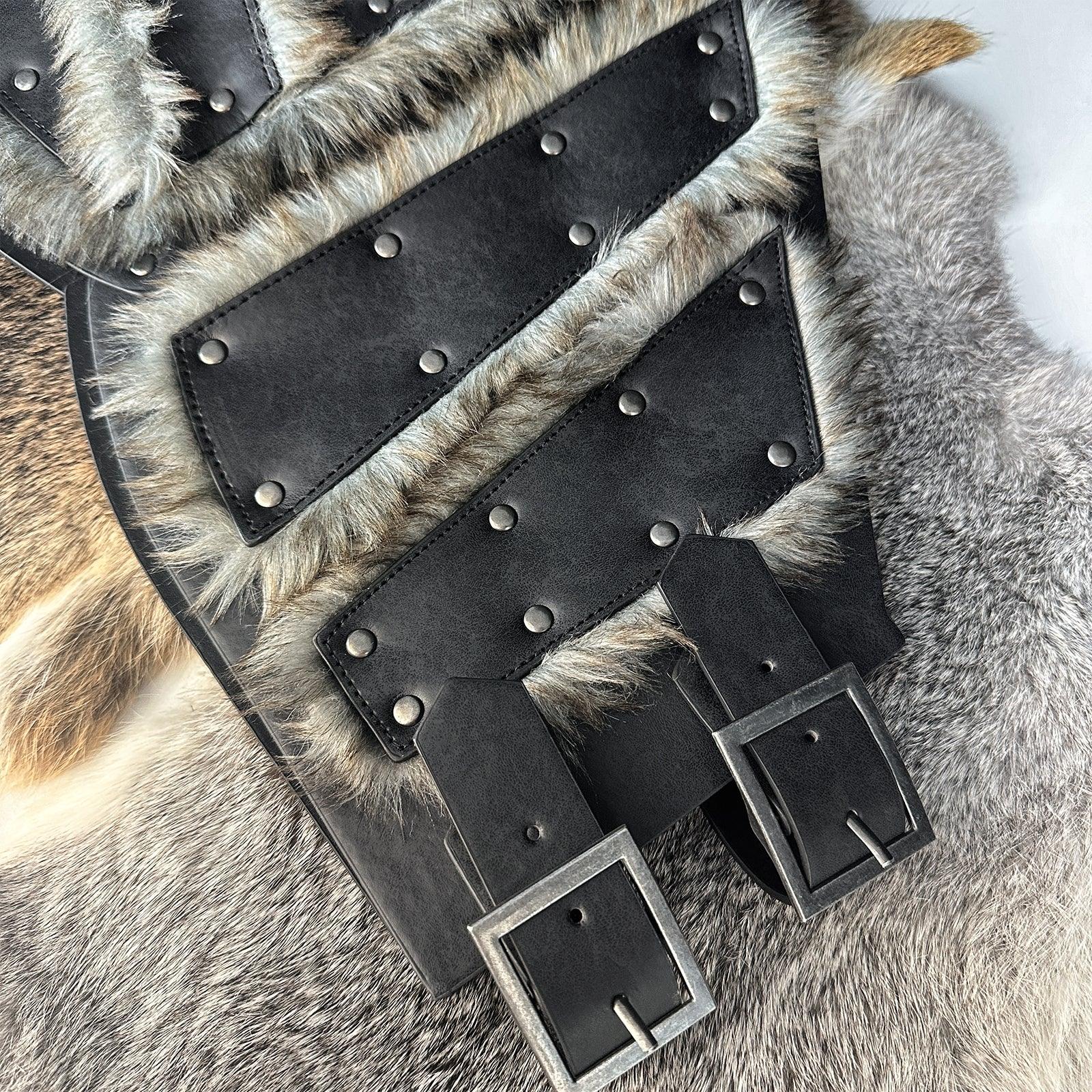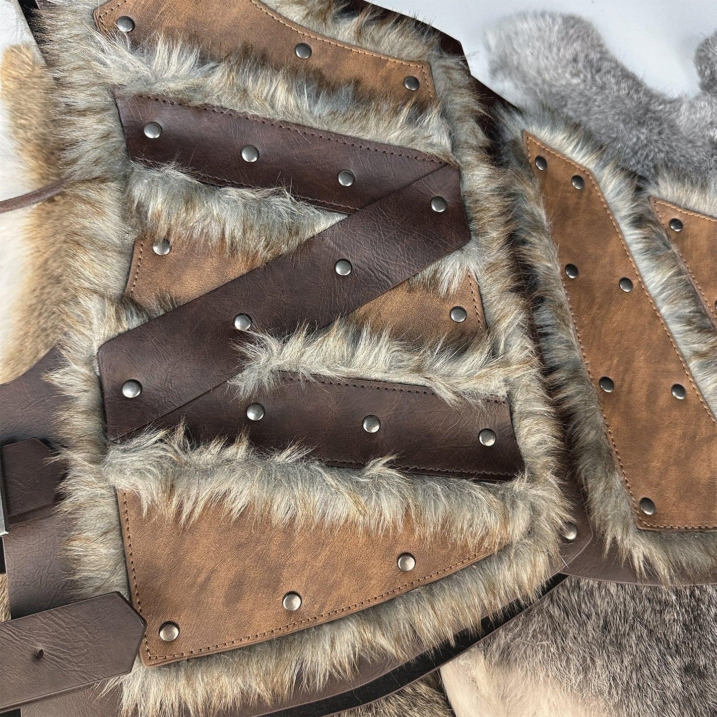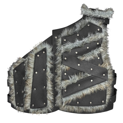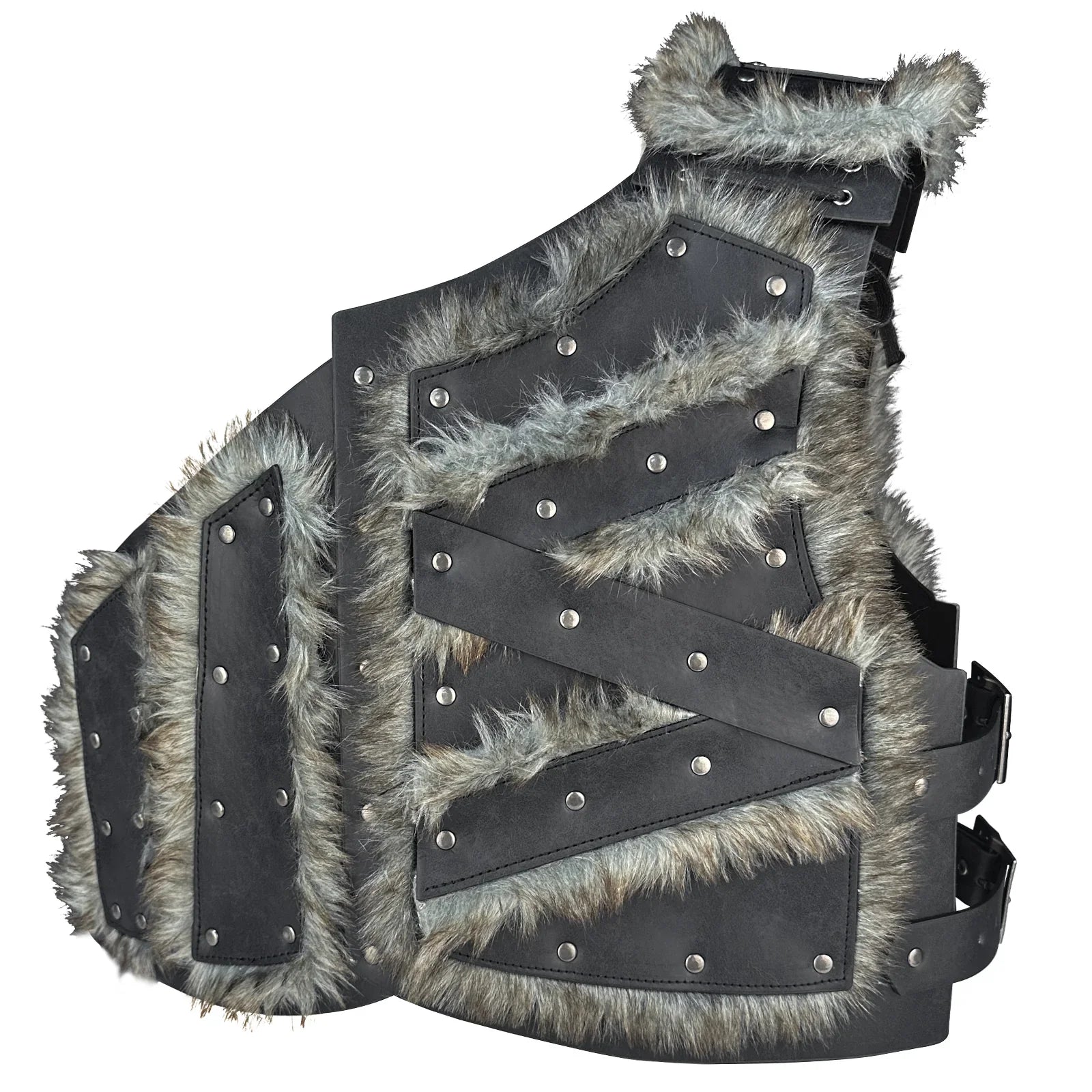 HiiFeuer Viking Artificial Fur Faux Leather Chest Armor, Medieval Vintage Barbarian Body Armor Knight Adjustable Vest Armor