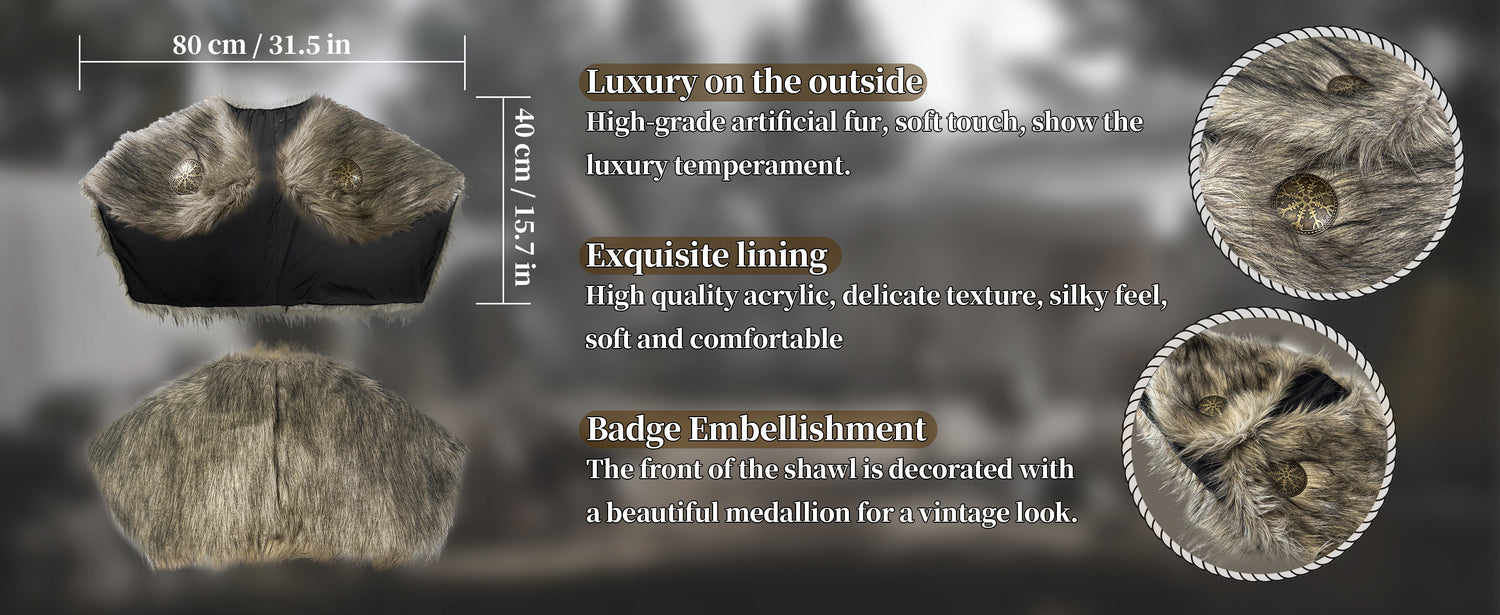 - COOL DESIGN- Unleash your inner monarch with this magnificent Viking Artificial Fur cloak with a unique Viking crest. Feel like you've stepped back in time to a time of bravery and legend when you don this cloak.