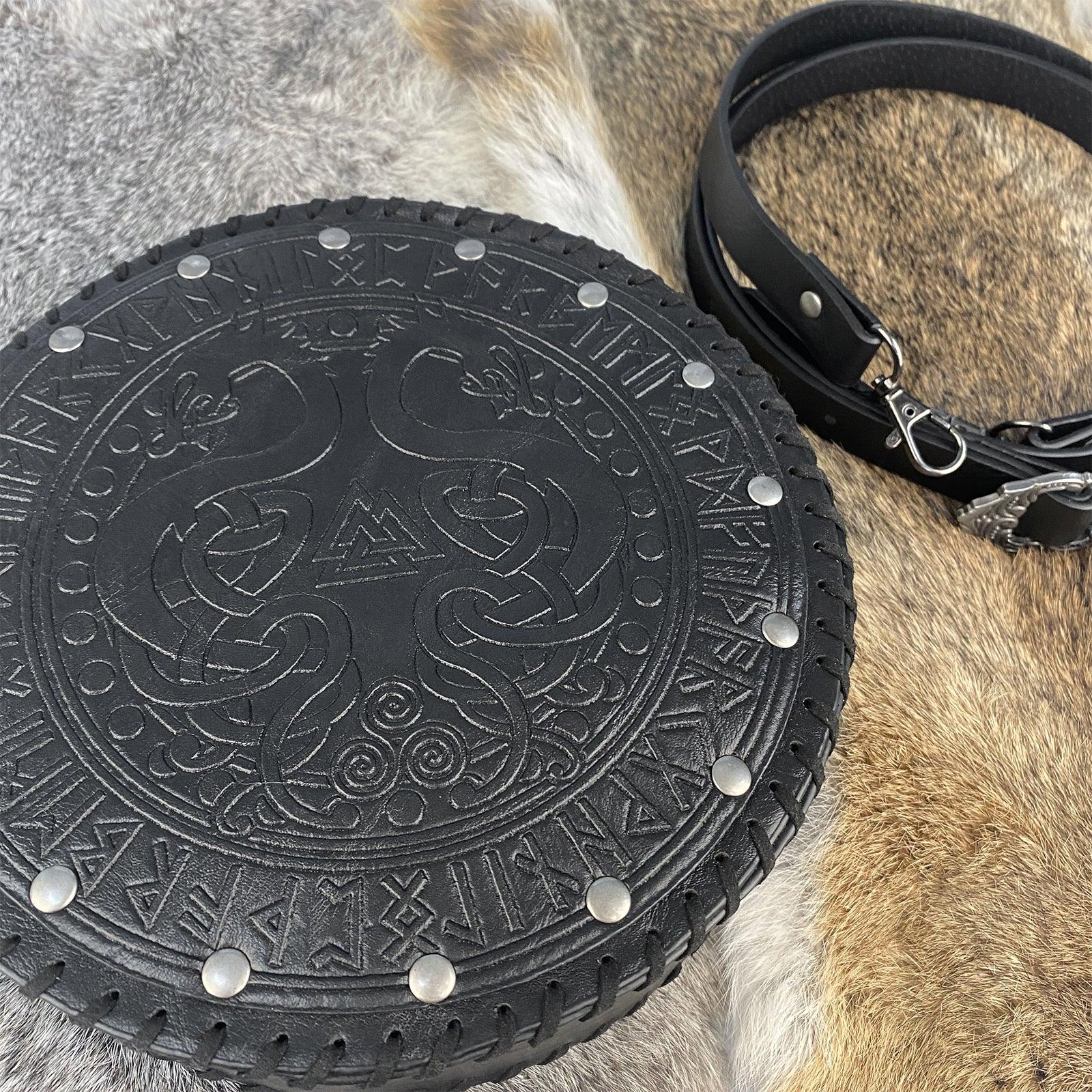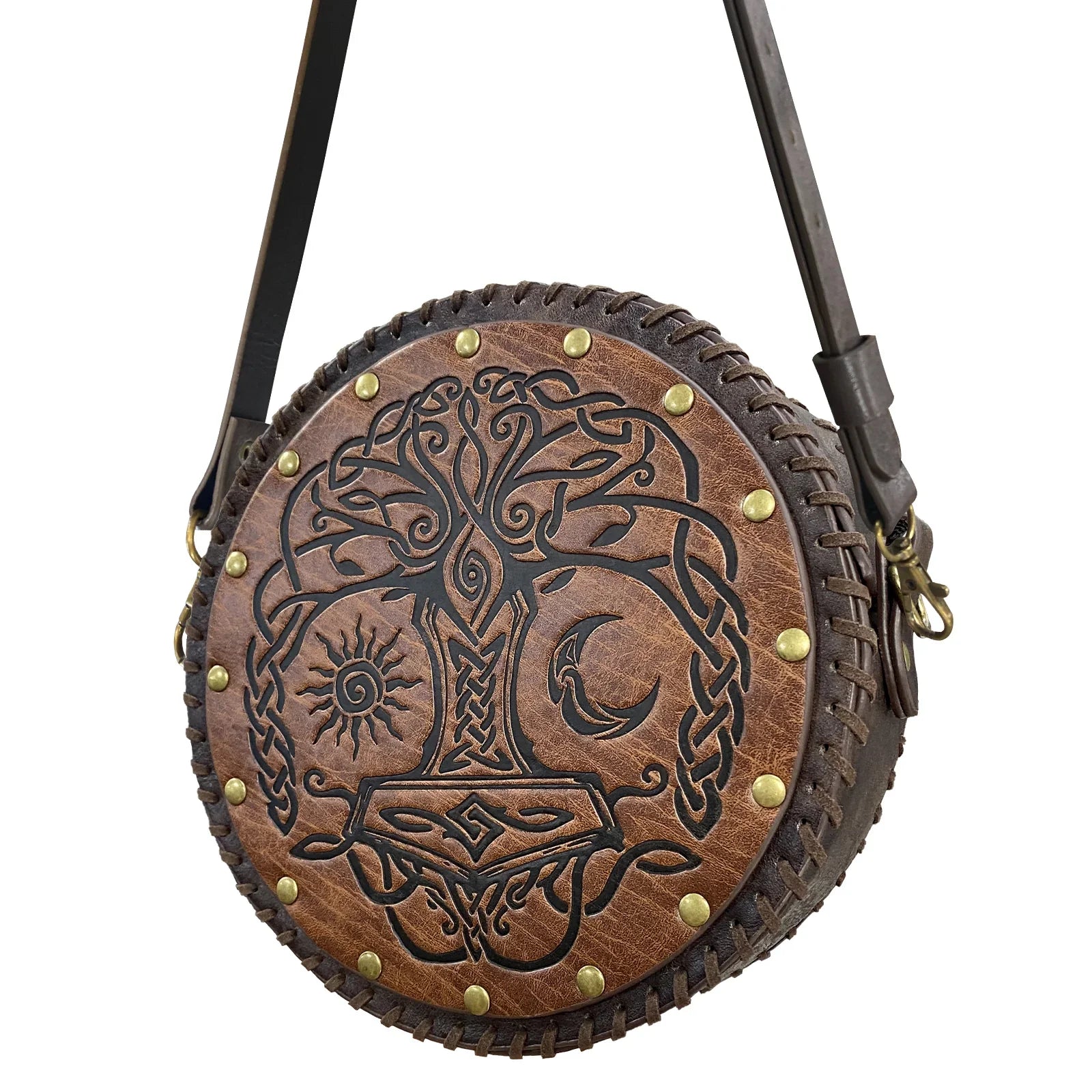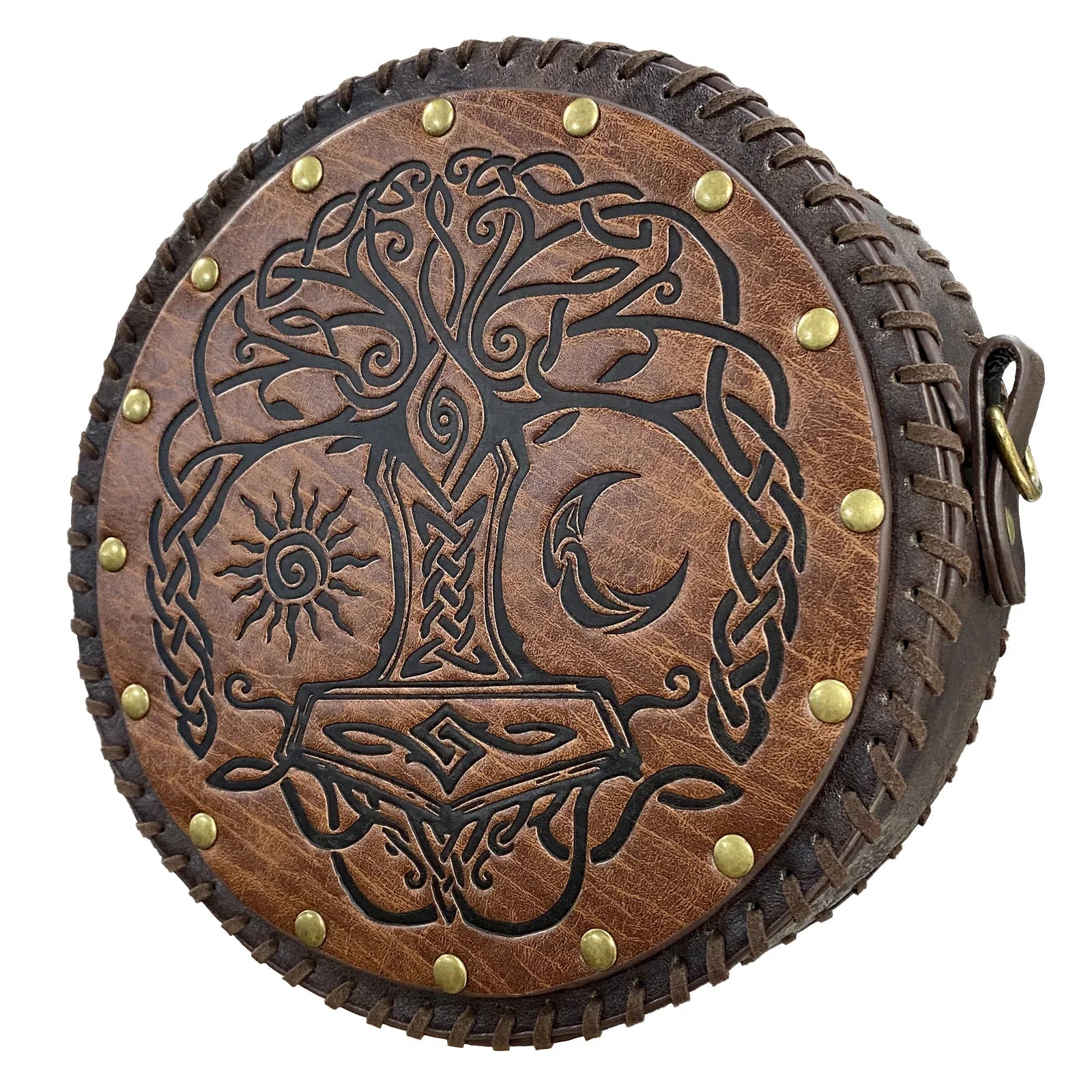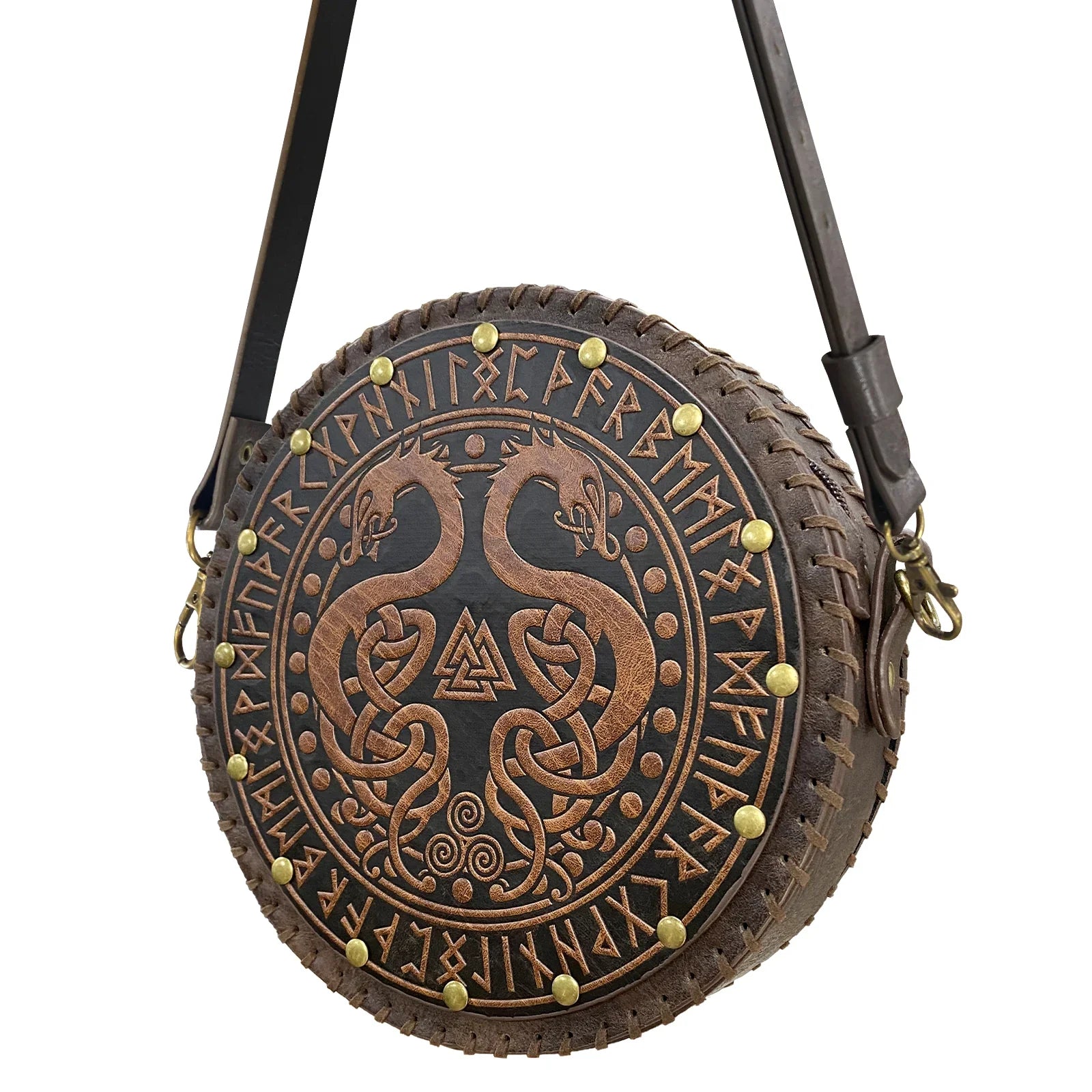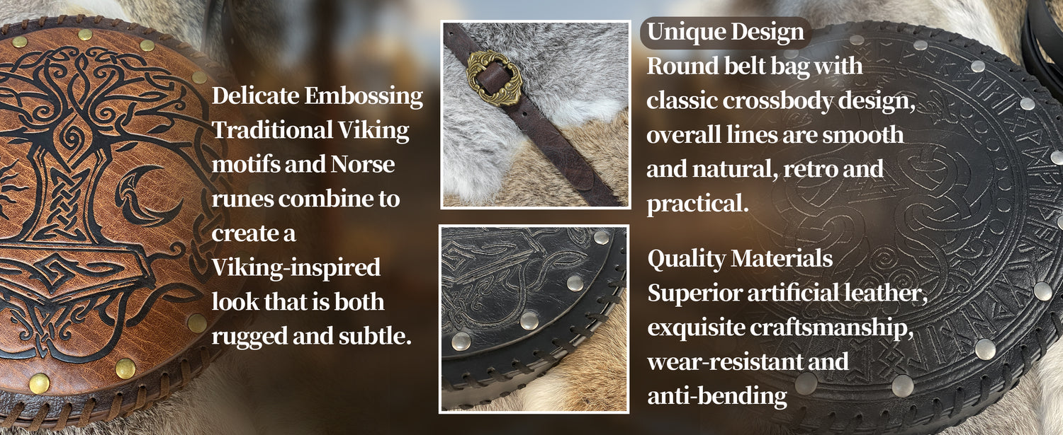 - COOL DESIGN- A classic rounded look with delicate Nordic embossing and a unique dual-purpose design that can be worn crossbody or on a belt. Suitable for daily use or renaissance events.
