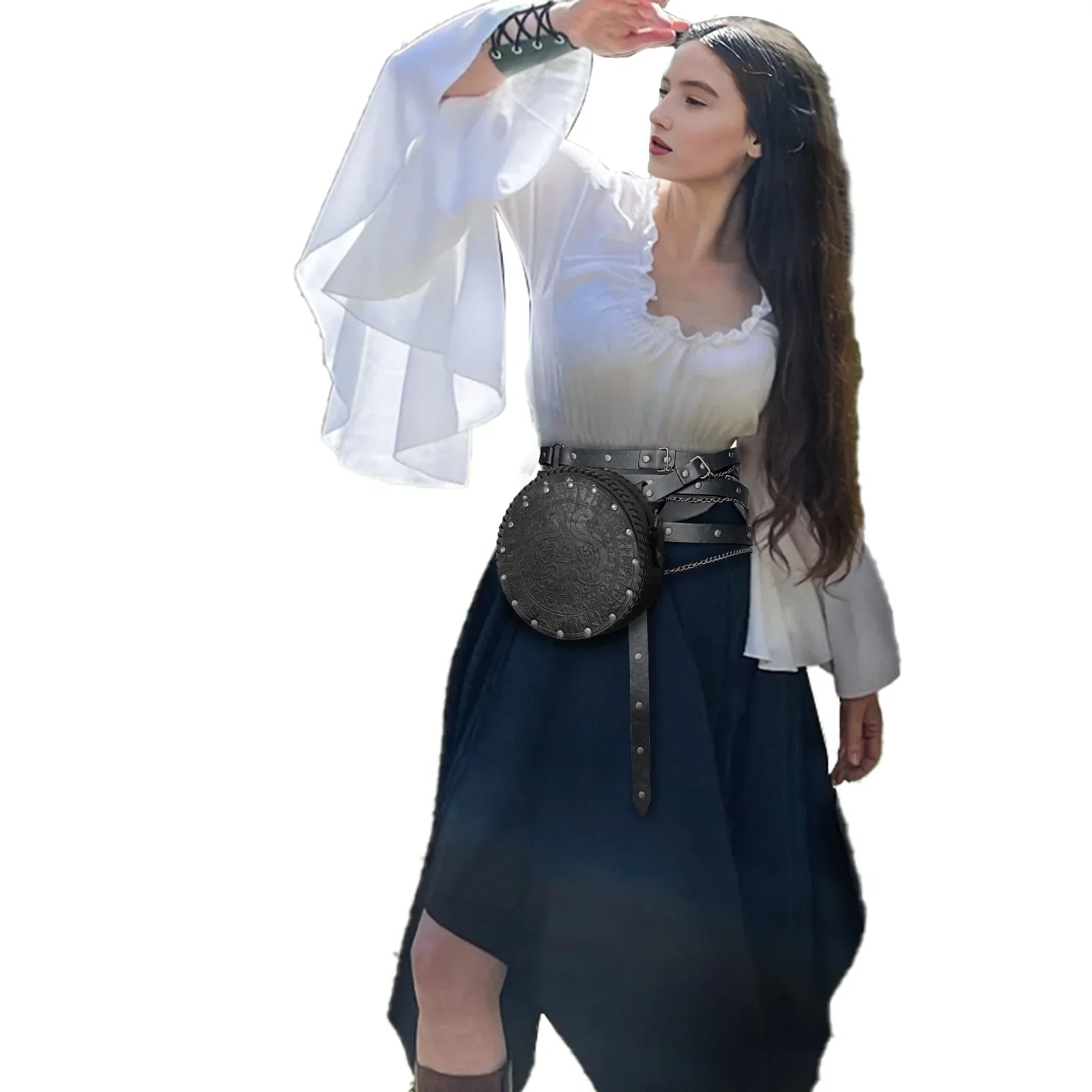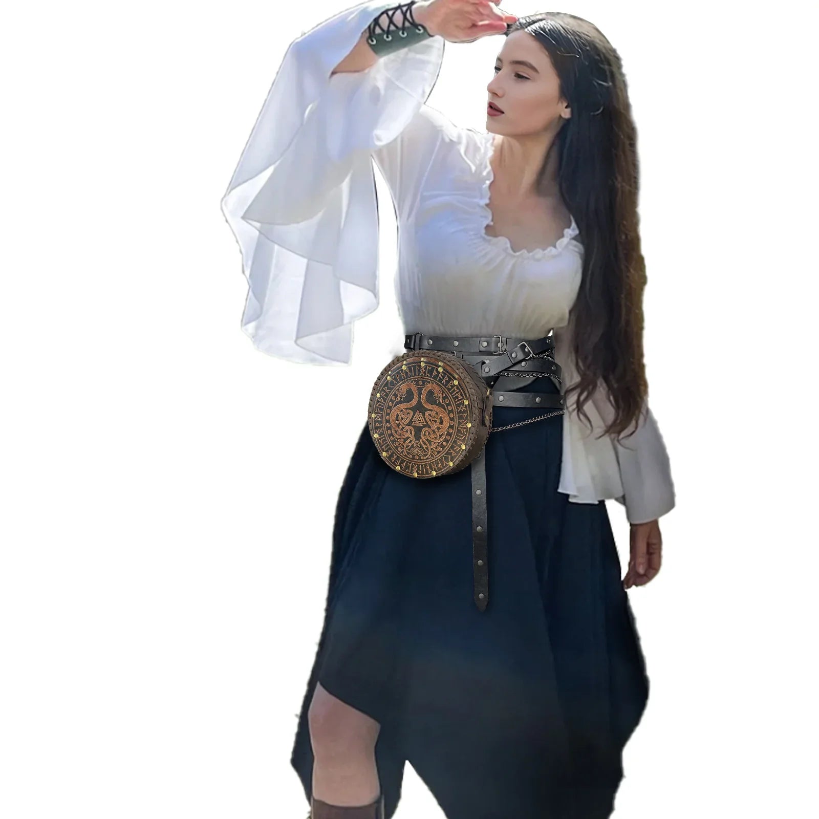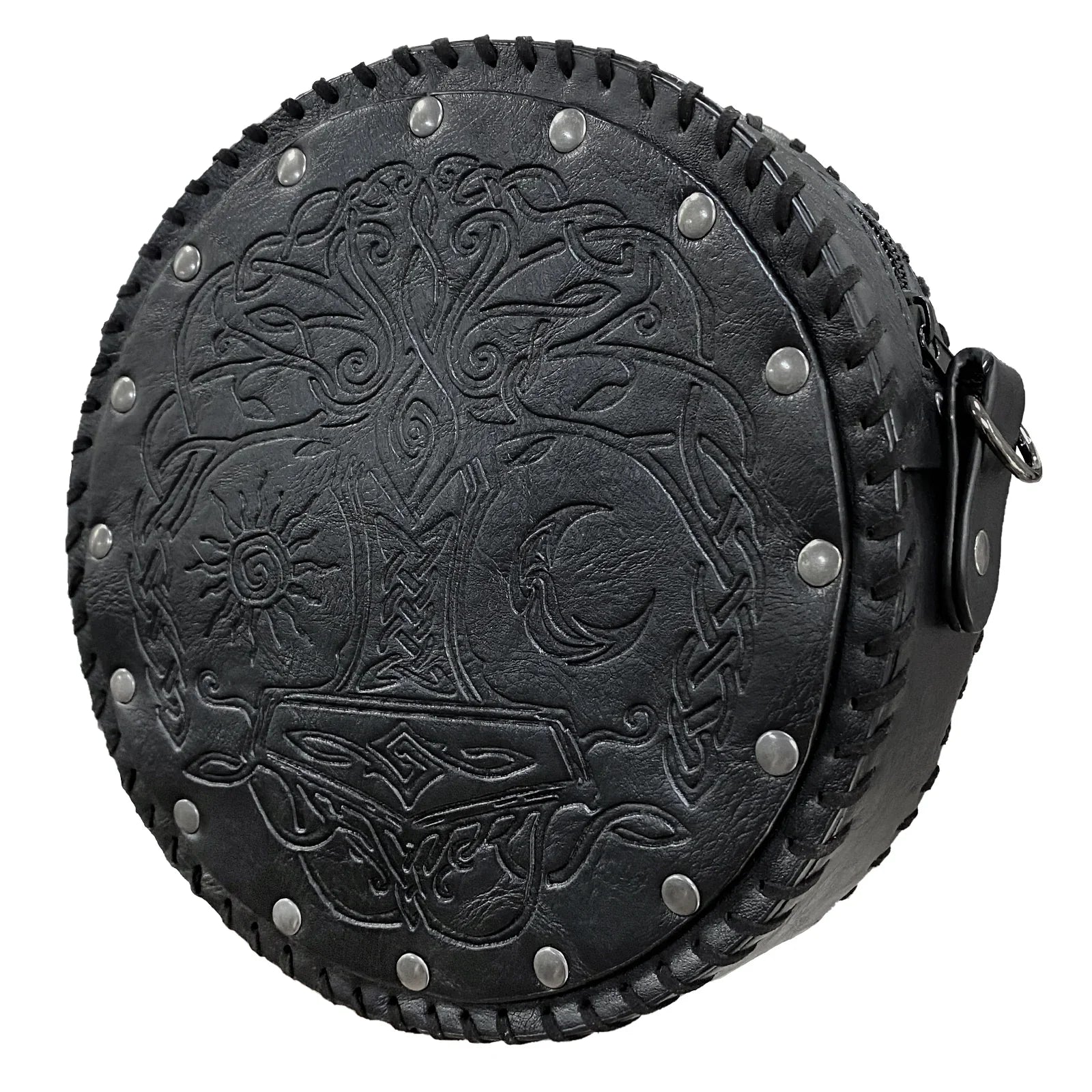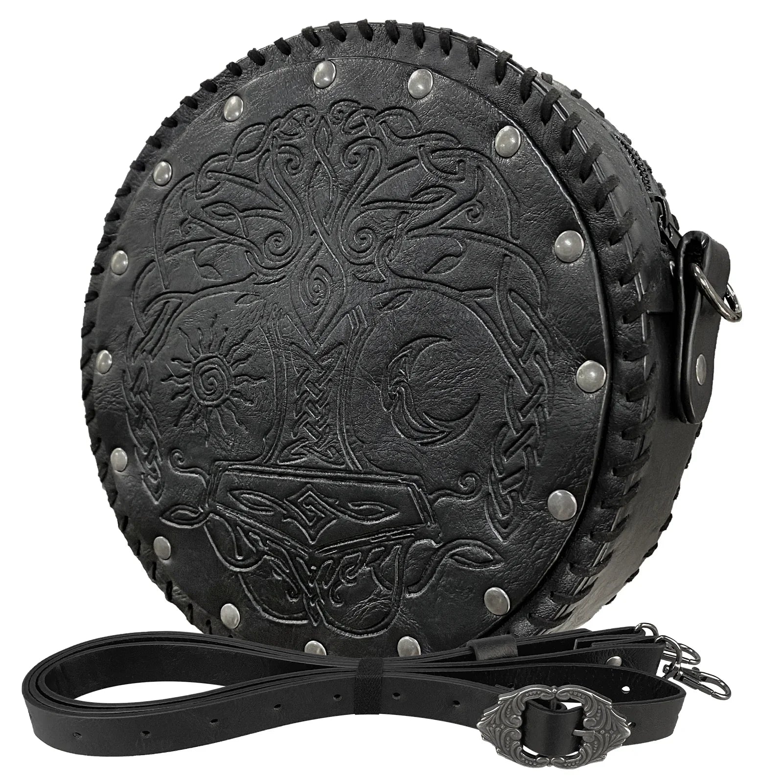 - COOL DESIGN- A classic rounded look with delicate Nordic embossing and a unique dual-purpose design that can be worn crossbody or on a belt. Suitable for daily use or renaissance events.