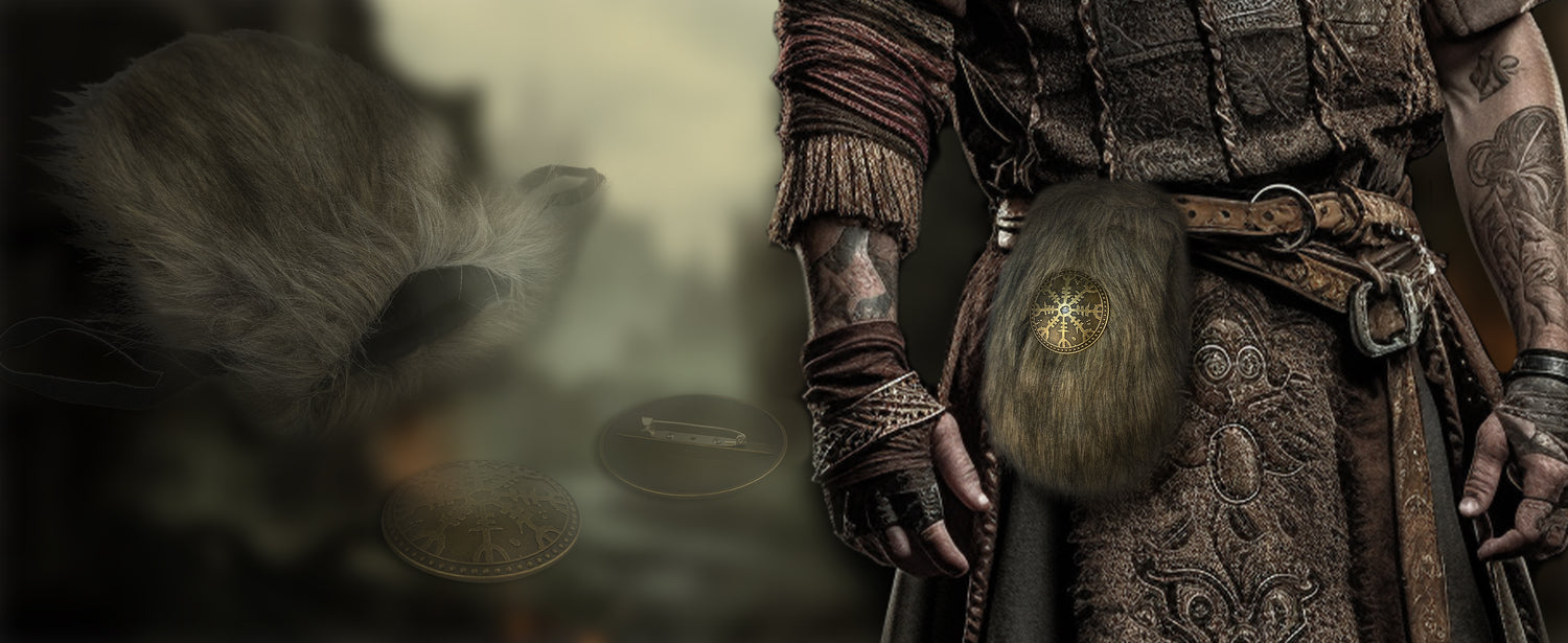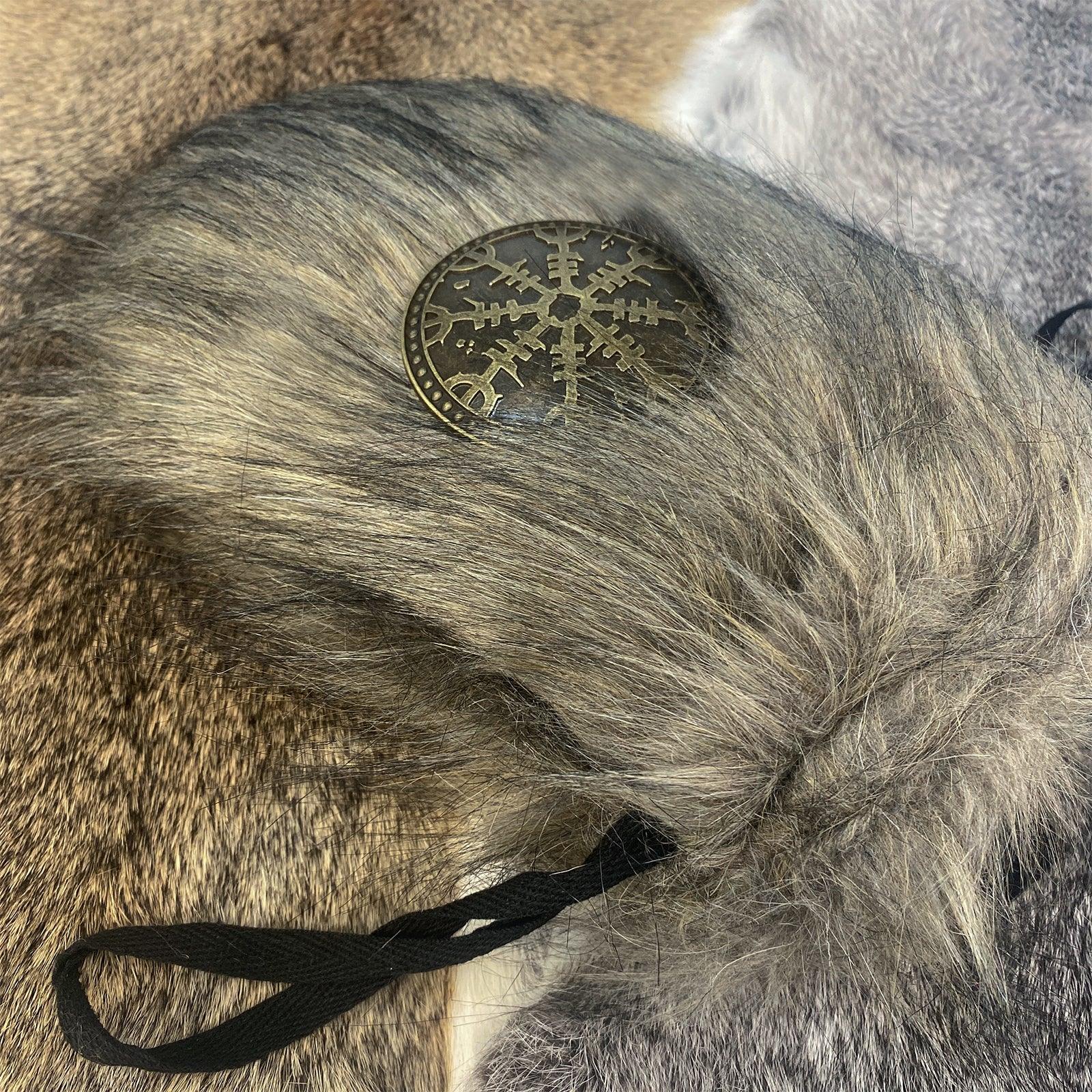 - COOL DESIGN- Medieval Artificial Fur waist bag, portable and large capacity, easily hold your treasures. Cool embossed Badge, like the amulet in ancient legends. Carefully crafted details take you back to a time of bravery and legend.