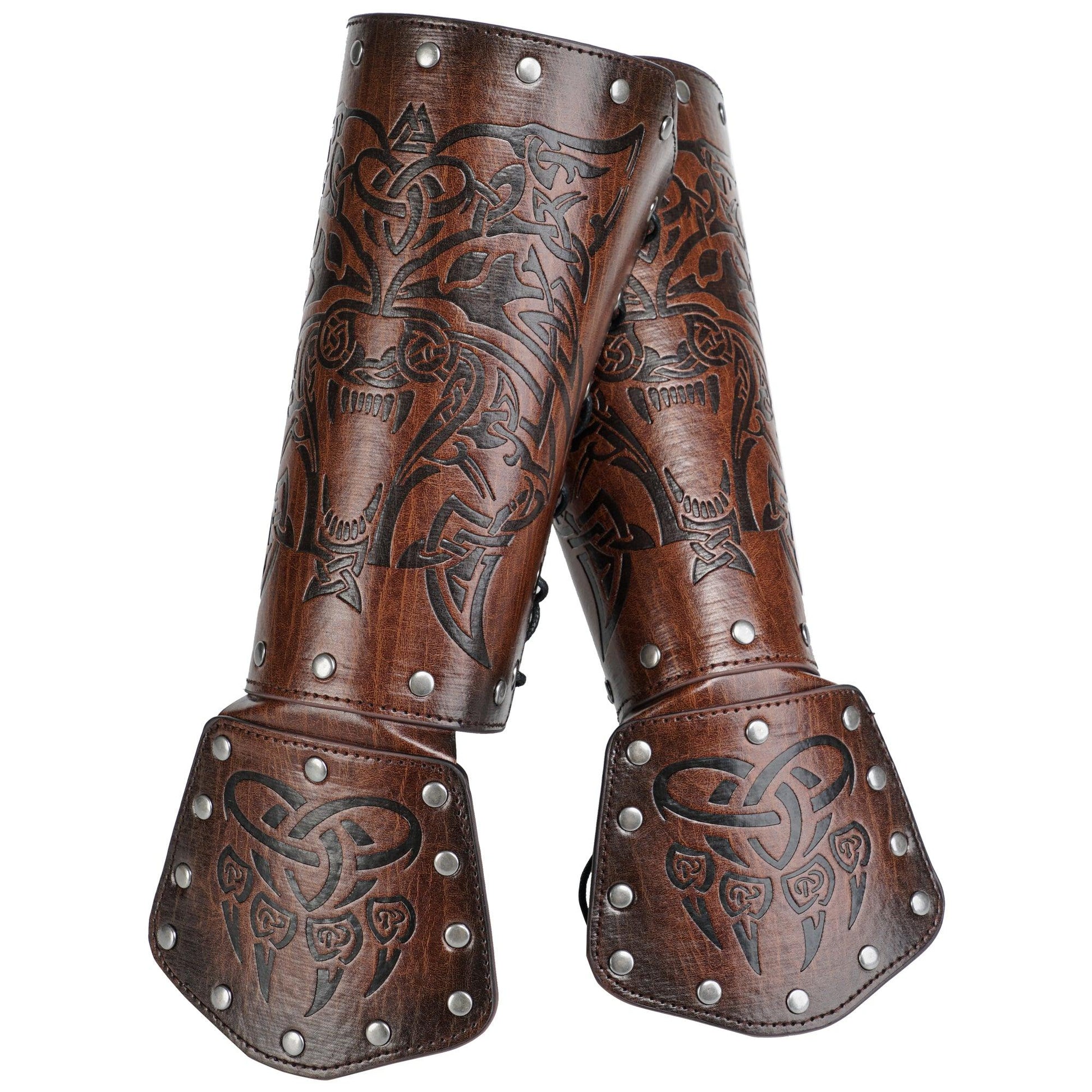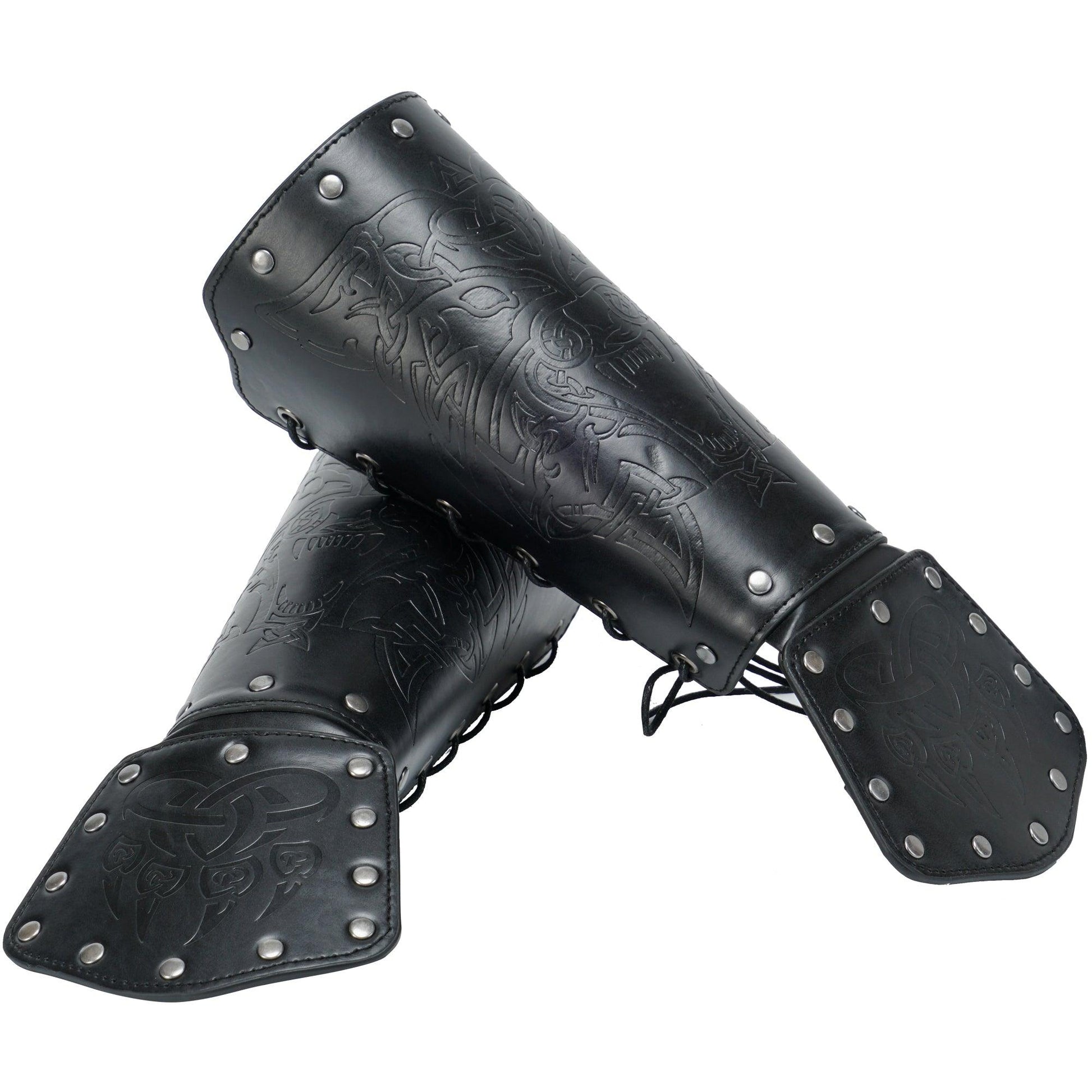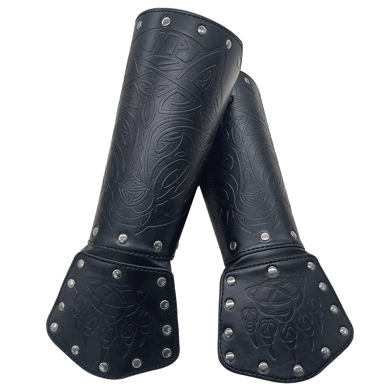 - ? COOL DESIGN- Unique viking style faux leather gauntlet, for the true viking warriors. Embossed traditional fenrir patterns, fully arm and fist covered, bring you back to the viking age. Are you ready to unleash your rage?!