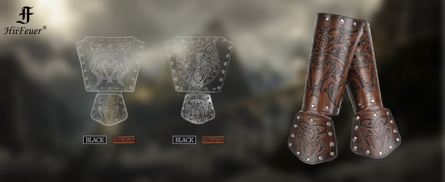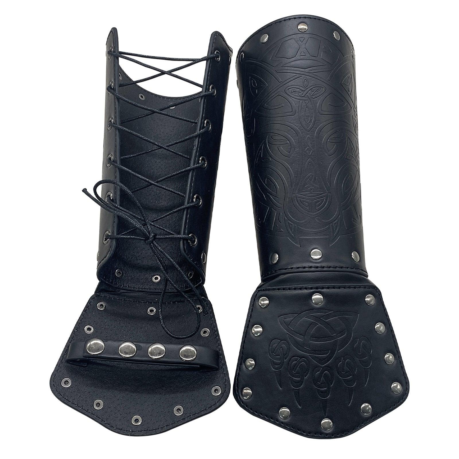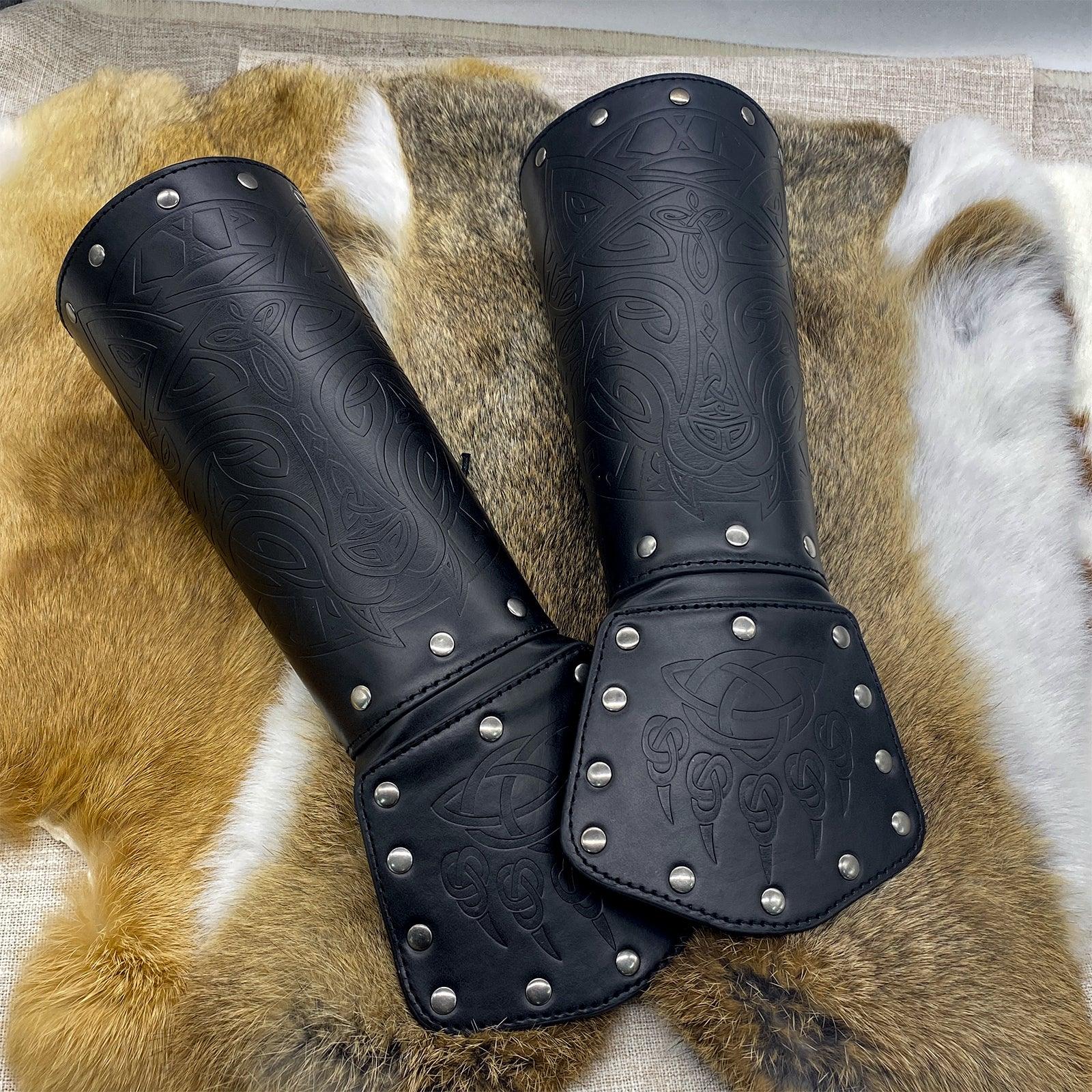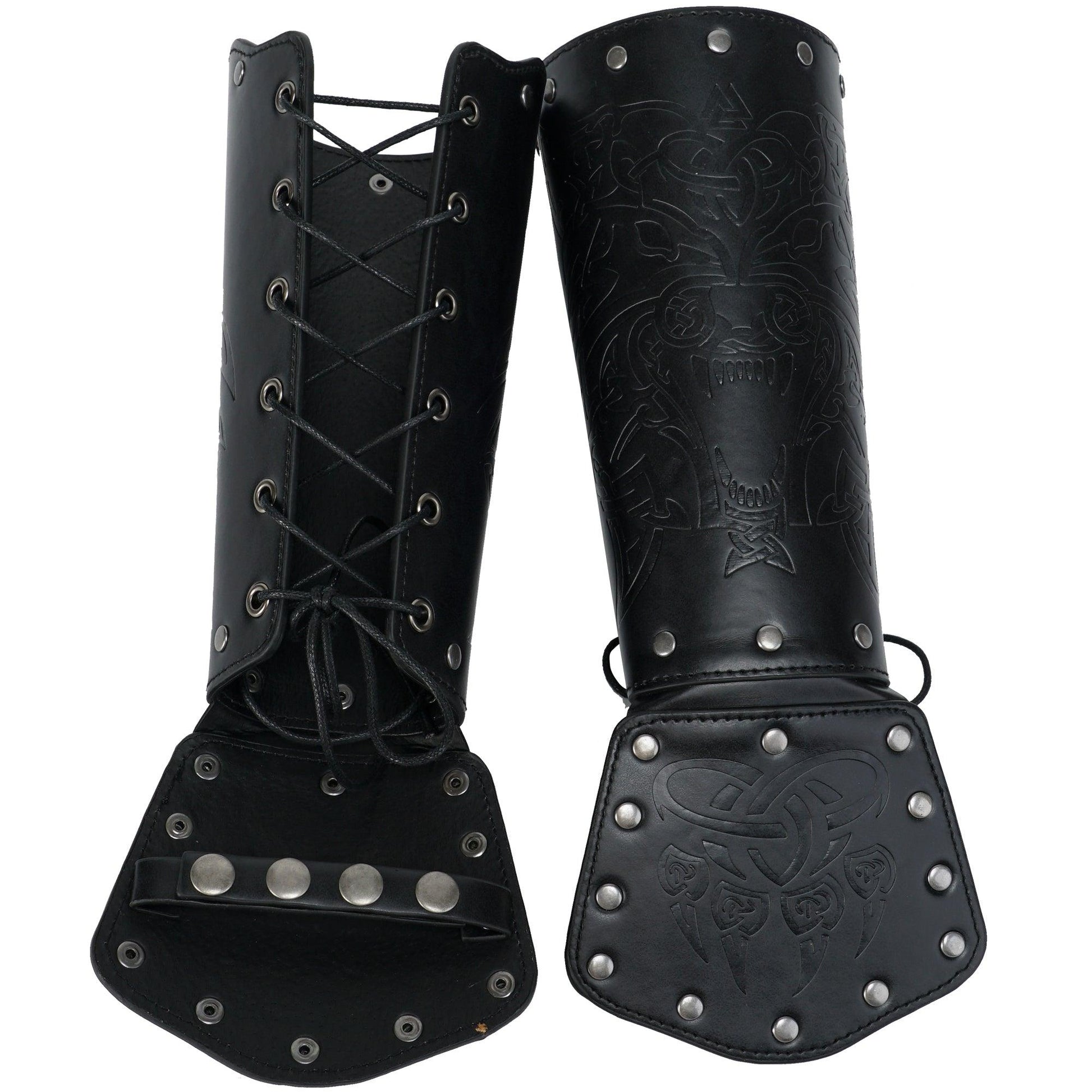 - ? COOL DESIGN- Unique viking style faux leather gauntlet, for the true viking warriors. Embossed traditional fenrir patterns, fully arm and fist covered, bring you back to the viking age. Are you ready to unleash your rage?!