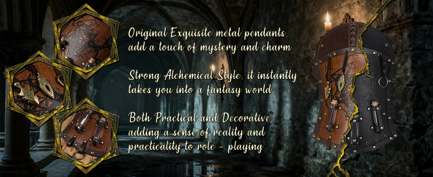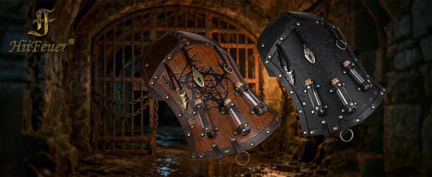 - FUNCTIONAL DESIGN- Comes with detachable potion bottles and decorative charms, allowing you to customize the shoulder armor to match your unique alchemist character