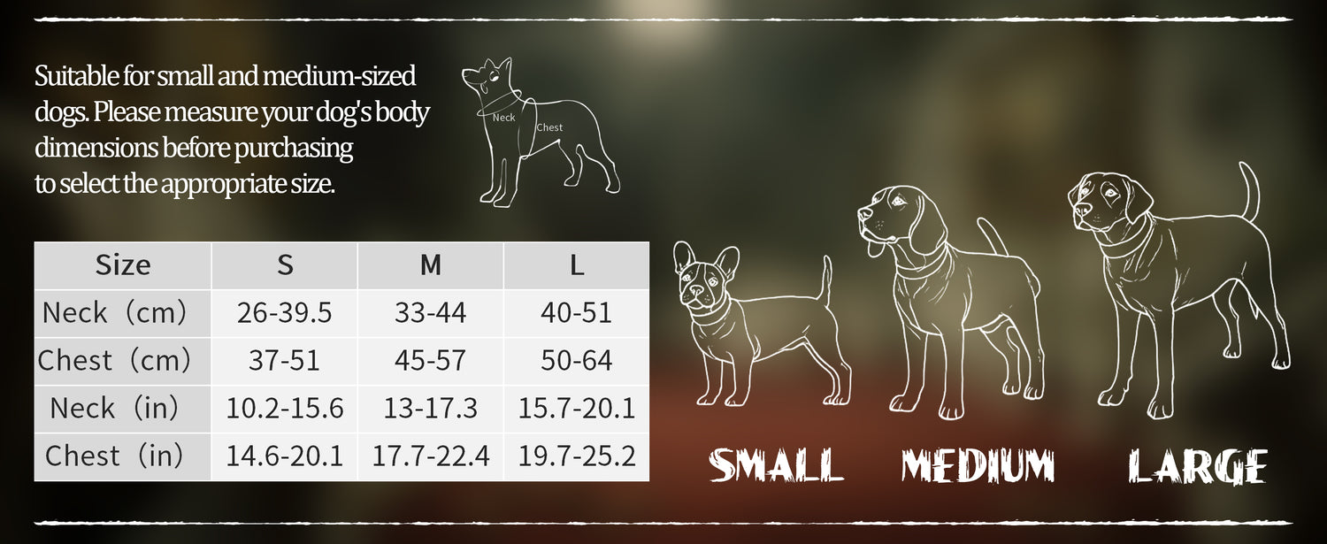 - ADJUSTABLE & COMFORTABLE FIT- Available in S, M, and L sizes, with adjustable straps for neck and chest. Refer to the size chart (neck and chest measurements in cm/in) to find the perfect fit. Make your dog stand out in dress up!