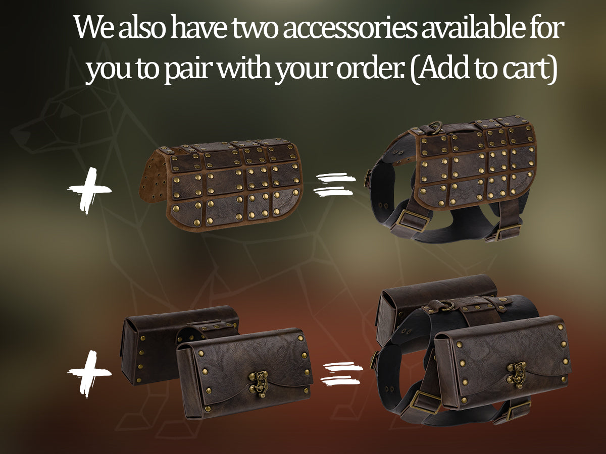 - PRODUCTS INCLUDED- A faux leather dog vest, dark and brown leather with bronze hardware, adding charm and novelty to the dog's look, can be used with two other assembled accessories for more style!