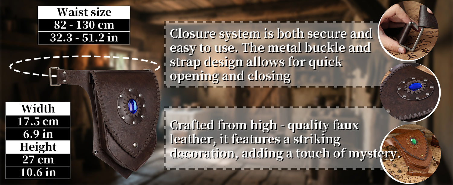 - GRADE FAUX LEATHER- This medieval-style thigh bag is meticulously crafted from high-quality leather, featuring excellent texture and remarkable durability. Skillfully incorporating medieval elements into its design, it is rich in retro charm while being highly practical. Whether paired with medieval-style clothing for events or used to store small items during daily outings, it will make you stand out in the crowd.