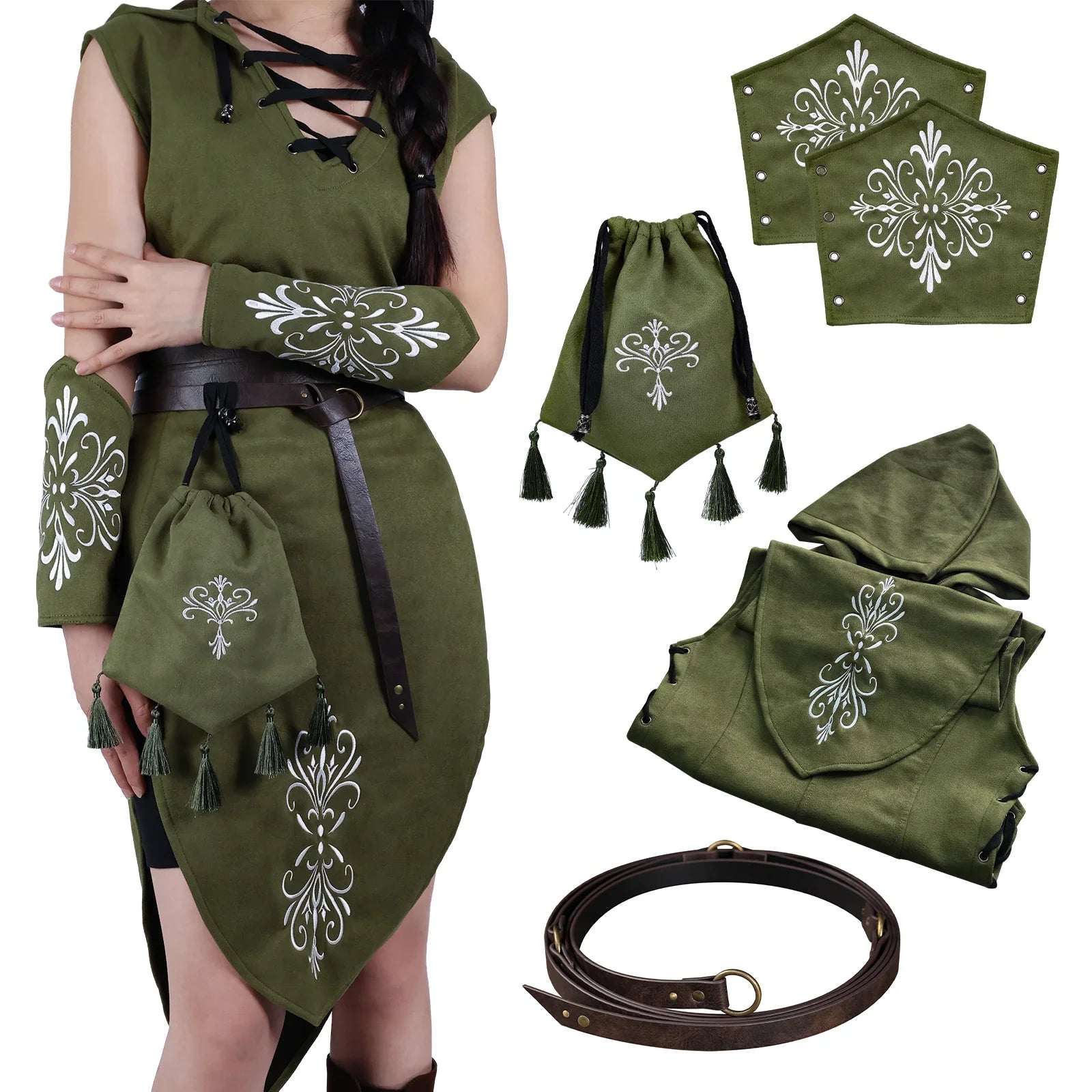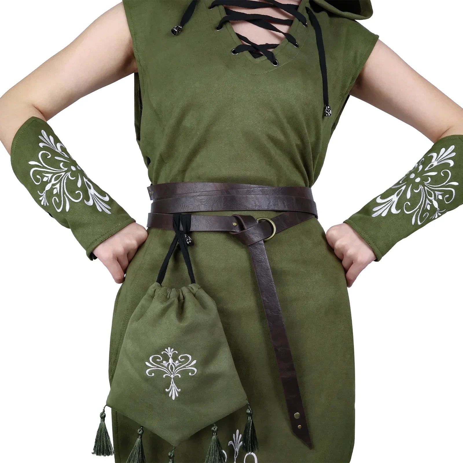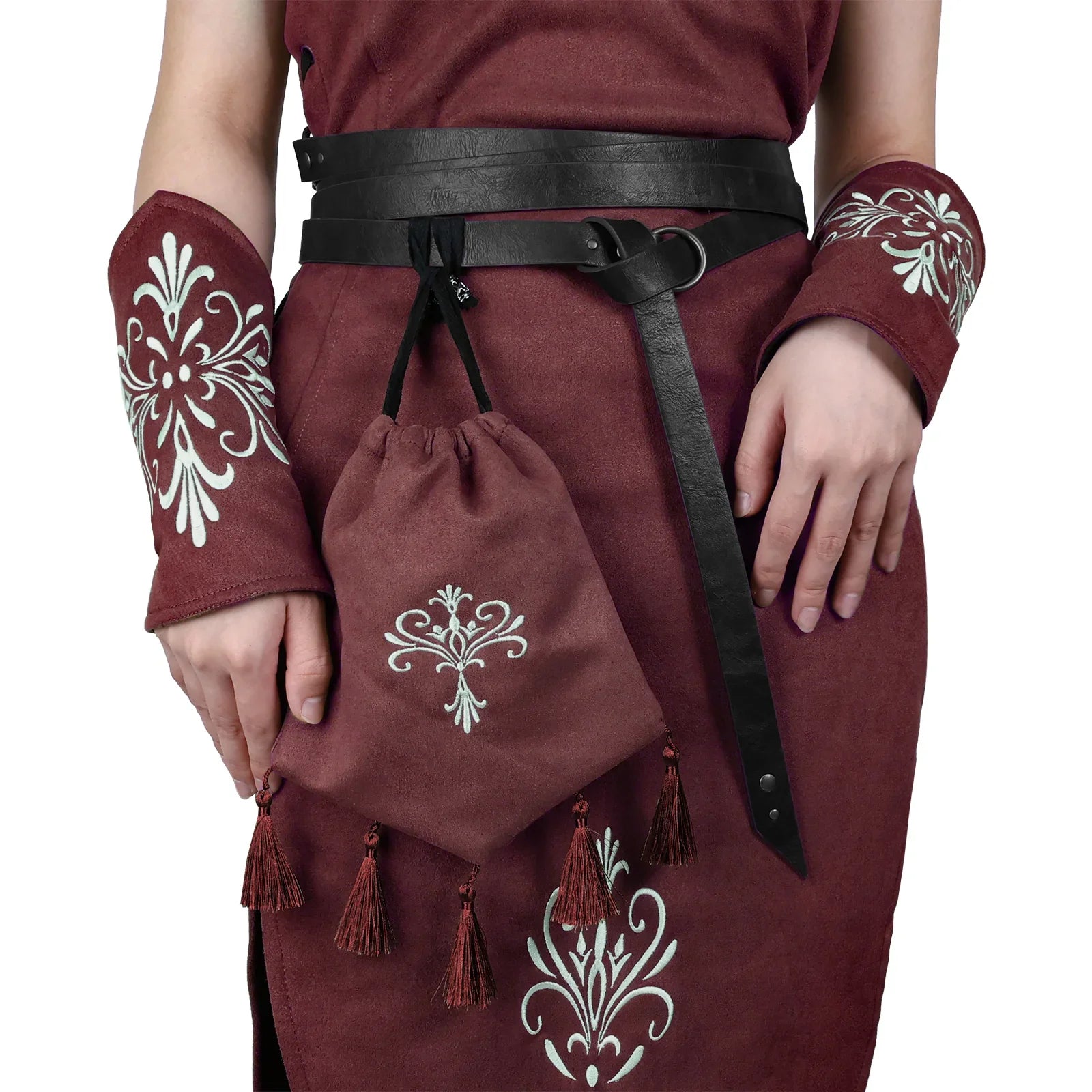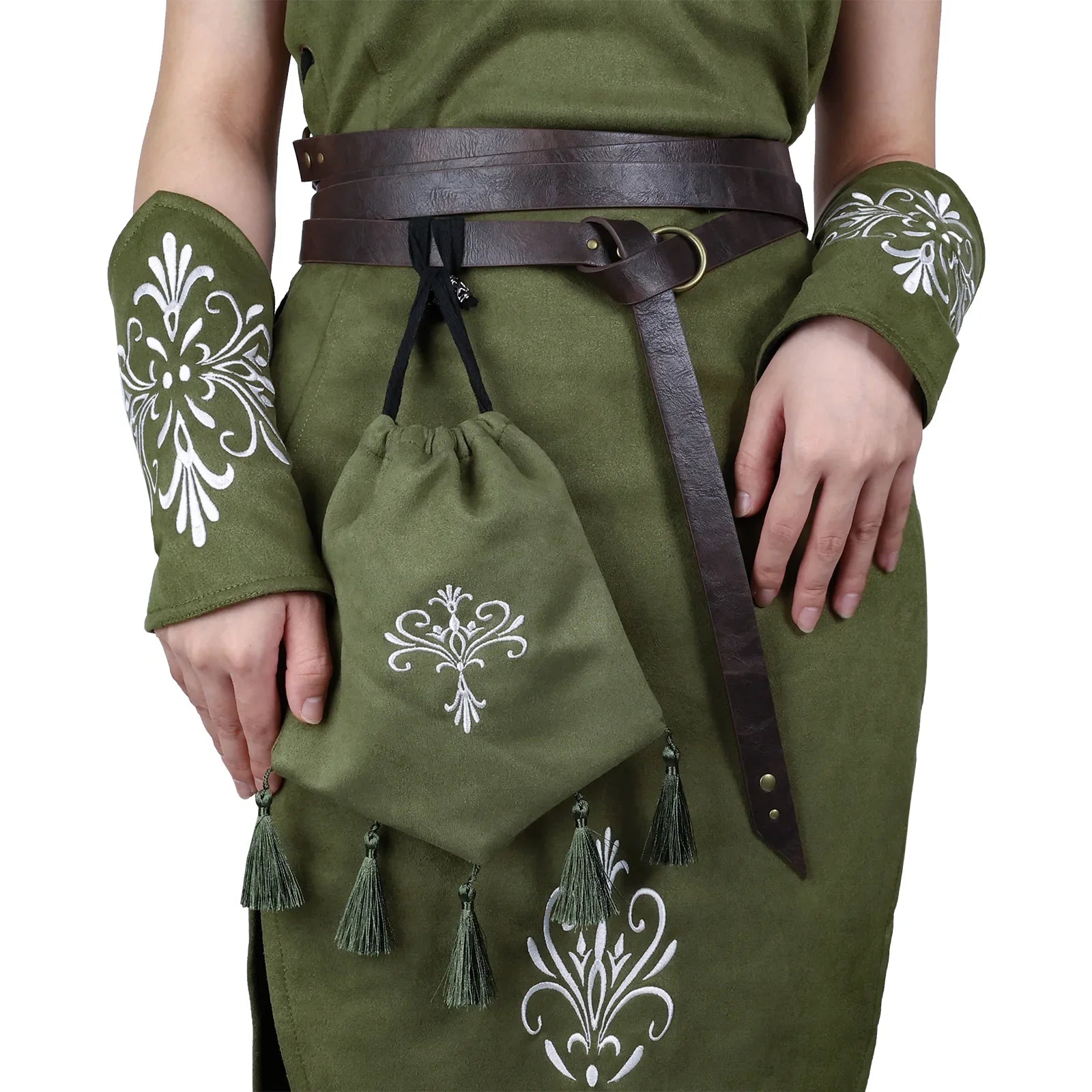 - EMBROIDERY & DETAILS- The embroidery on the dress, bracers and pouch adds a touch of elegance and vintage charm, enhancing the overall medieval aesthetic and making you stand out at any historical or fantasy-themed event.