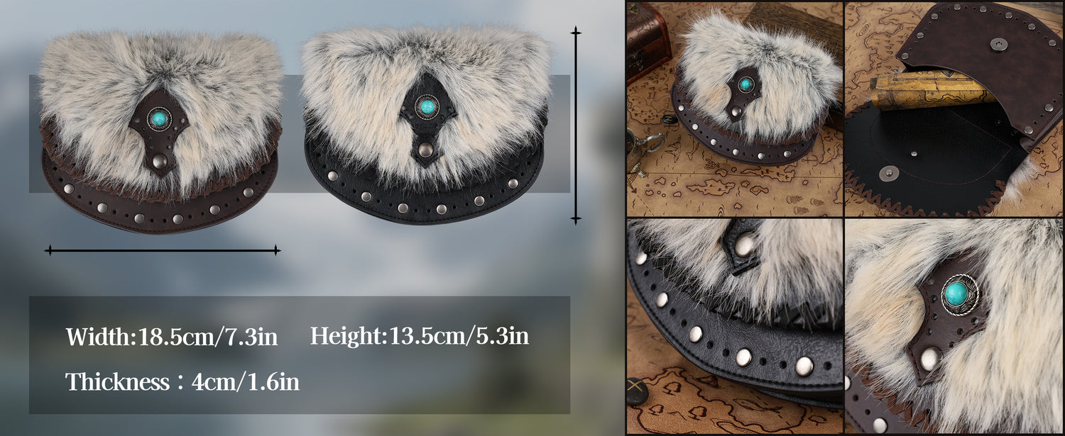 - UNIQUE COSPLAY DESIGN- This waist bag features a blend of plush faux fur and vintage - style leather, adorned with a turquoise - like stone accent. It’s perfect for adding an authentic, rugged touch to cosplay outfits like Viking, medieval, or fantasy warrior looks. Whether you’re portraying a fierce Nordic raider at a comic - con or a mysterious elven warrior in a fantasy - themed shoot, it amps up the character’s authenticity.