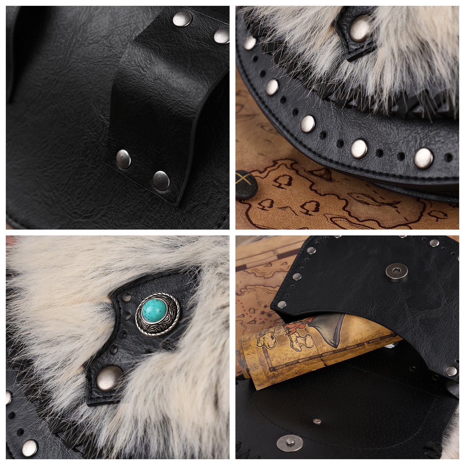 - MADE OF QUALITY FAUX FUR AND STURDY LEATHER- like material, with rivet detailing for a premium, long - lasting build. Resists wear and tear, maintaining its cool aesthetic through multiple uses. From regular cosplay events to occasional Renaissance festival outings, it holds up well, ensuring your standout accessory stays in shape.